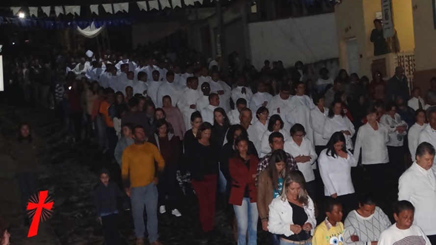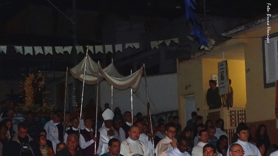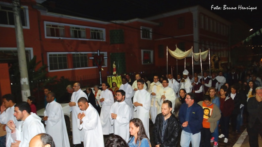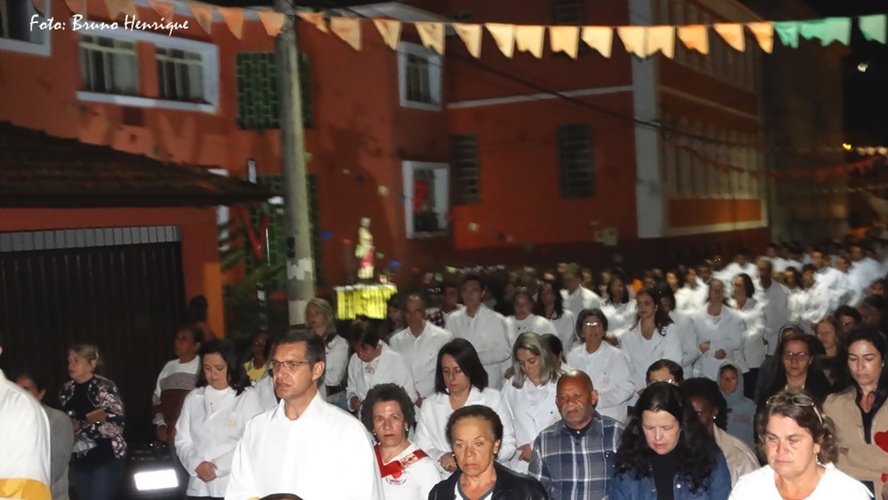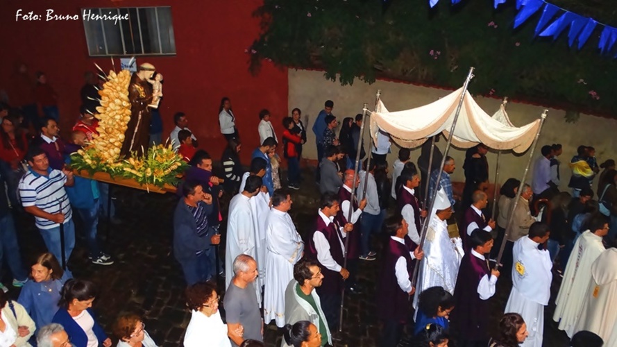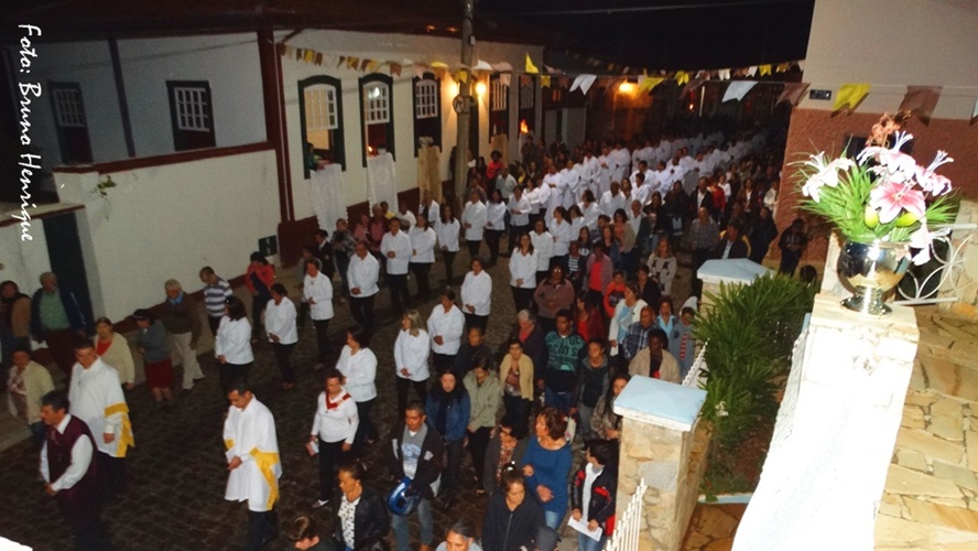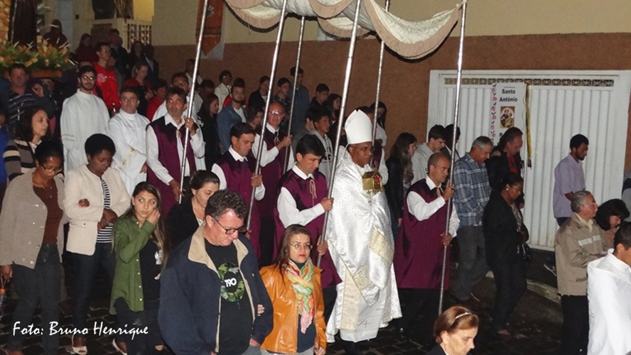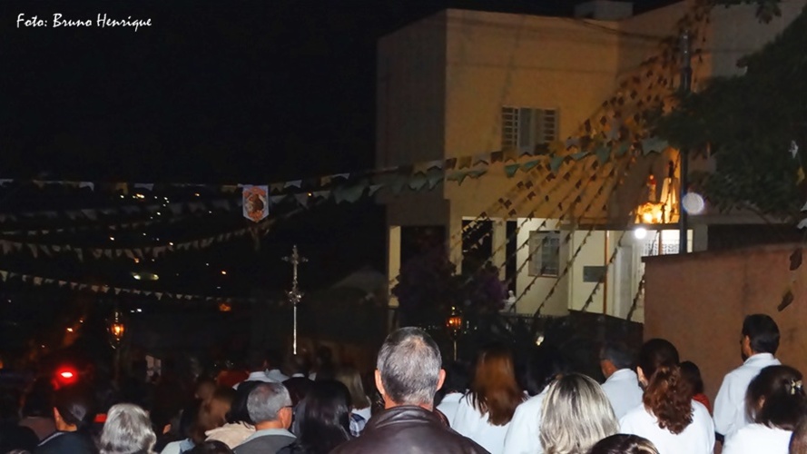Os fiéis preparam as ruas, enfeitando-as com bandeirolas e as casas, colocando toalhas e colchas coloridas com flores nas janelas. Animou a procissão a Fanfarra Irmão Paulo. E nem a chuva atrapalhou a participação dos fiéis! Mesmo com chuva a procissão seguiu o seu trajeto planejado e os fiéis acompanharam!