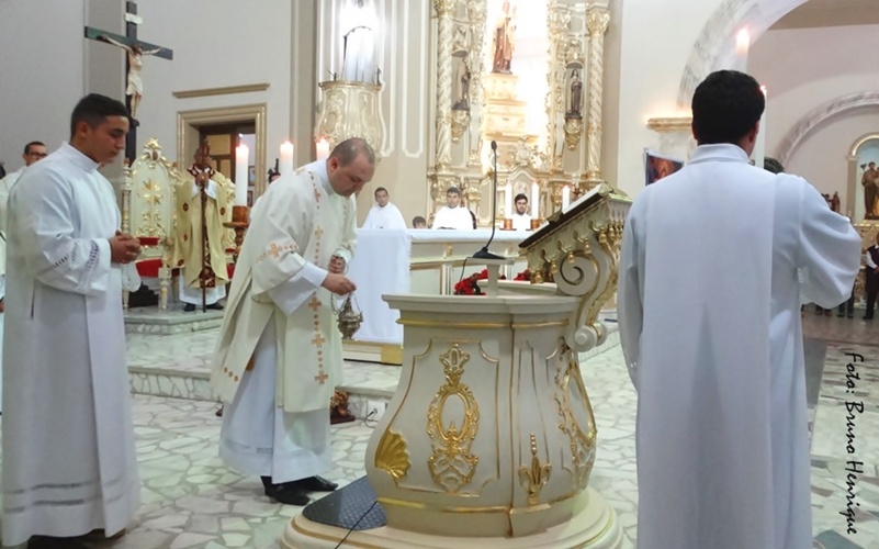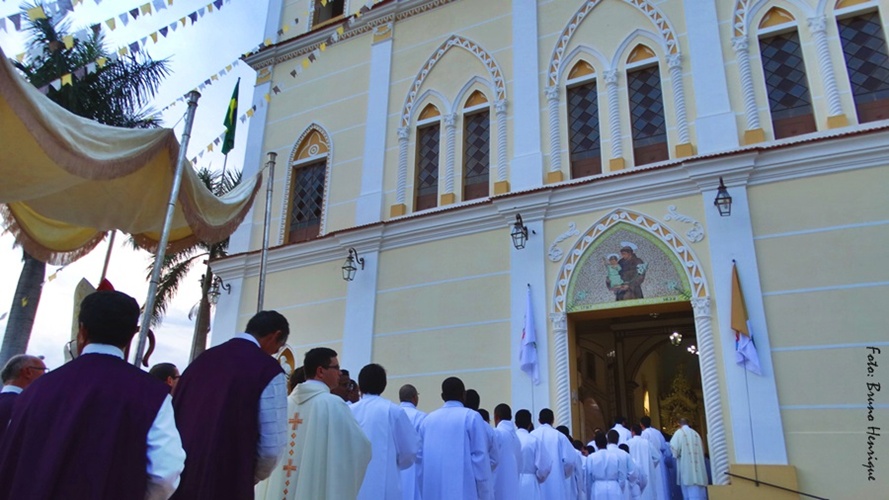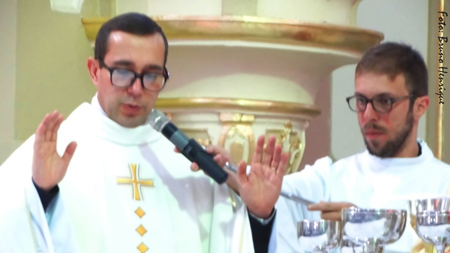“Cristo no Evangelho de hoje nos recorda aquilo que é muito importante na vida de um missionário. Santo Antônio foi um santo missionário que sai de sua terra, sai de Portugal e vai viver a experiência da semeadura da Palavra de Deus nesses dois países, mais especificamente, na França e na Itália. É aquela experiência que ele faz de Jesus mesmo que envia os discípulos dois a dois! E aí tem um trecho interessante: ‘Ele mesmo pudesse estar nesses discípulos que ele envia’. A primeira consciência que temos que ter como missionários ou discípulos de Cristo é que não estamos sozinhos nessa trajetória mesmo que haja dificuldades no anúncio e no testemunho do evangelho, que nós sabemos que temos! Não existe cristão que não tenha encontrado ou que não encontre dificuldade na vivência do Evangelho, no anúncio e no testemunho desse mesmo Evangelho! O mais importante não é pensar na dificuldade! E termos a certeza de que não estamos sozinhos! É o Cristo que envia, Ele está presente em quem envia: no enviado! E aí a certeza de toda vocação. Eu e meus 27 anos de sacerdócio, que o Senhor me chamou e me consagrou há 27 anos e esse evento ficou no passado. Não! Ele continua assistindo! Nós continuamos a sentir a sustentação no nosso caminhar, na nossa missão através Dele. Ele está presente na nossa vida! Daí São Paulo dizer: ‘o meu viver é Cristo!’ Ele não sabia mais separar a presença de Cristo na sua vida.”