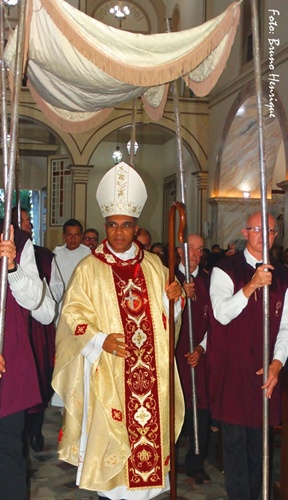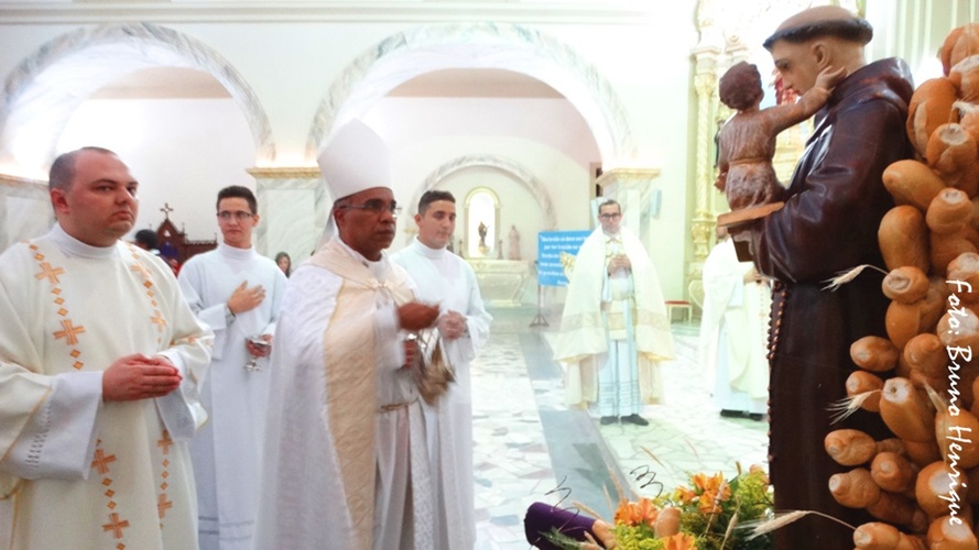 “O primeiro aspecto que gostaria de sublinhas é sobre a I Leitura [Is 61, 1-3a] que nós ouvimos do profeta Isaías, é uma leitura tipicamente sacerdotal. E quando nós falamos sacerdotal, não significa só o sacerdócio ministerial, mas o sacerdócio comum dos fiéis. O profeta explica a razão pela qual nós recebemos o Espírito. E Santo Antônio foi muito dócil a esse Espírito. O espírito que nos foi dado para nós recebermos em nosso ser a Palavra de Deus e só entendemos essa Palavra mediante a presença do Espírito em nós. O Espírito é o primeiro e fundamental protagonista na missão. Missão esta que esteve muito presente na vida de Santo Antônio, missão esta que deve estar presente na vida de cada batizado! O que nós devemos fazer com a presença do Espírito em nós, seja pelo batismo seja pelo sacramento da ordem! E Sto. Antônio recebe o sacramento da ordem para viver exatamente essa vivência do profeta Isaías. O Espírito é dado e nos dinamiza, nos impulsiona a transforar a vida das pessoas, sobretudo as mais necessitadas. ”