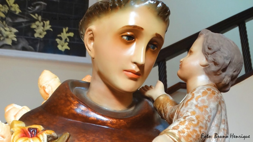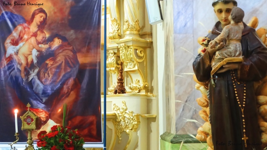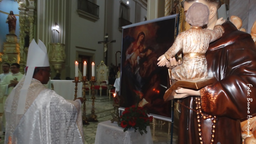 “Santo Antônio fez 6 sermões dedicados à Virgem Maria. Sempre relacionando a Virgem ao mistério de Cristo. Uma das frases bonitas de seu sermão: ‘a criatura carregou no seio seu criador e a pobre virgem, o Filho de Deus’. Daí essa imagem de Santo Antônio com a criança e a vigem! Nesse mesmo canto [Ó gloriosa domina!] fala de um seio lactante, abundante, que representa, portanto, a própria graça! Essa criatura que está acima de qualquer realidade criada na terra. Talvez a partir desse canto Santo Antônio tenha tirado essa percepção do papel de Maria na sua e em nossa vida! Santo Antônio manifestava um amor profundo à Mãe de Jesus! Não se envergonhava! Eu, nesses meus 10 anos como seminaristas e 27 anos como padre, conheço muita gente que se envergonharam de Nossa Senhora. ‘Eu estou em outra denominação religiosa, seu bispo, porque agora, só Jesus’. ‘Nada de olhar para a mãe’. ‘Fui mal educado na igreja católica. Me ensinaram a, desculpe a expressão, a adorar Nossa Senhora; agora aprendi a adorar só Deus’. São tantas frases distorcidas acerca da nossa religião e do papel de Maria no quadro da nossa espiritualidade! Maria também é uma educadora nossa no campo da fé, quando nos aponta a fazer sempre a cumprir a vontade de seu filho Jesus Cristo. Esse amor que Santo Antônio tem pela a mãe de Jesus, sempre era relacionado a Virgem com Jesus.”