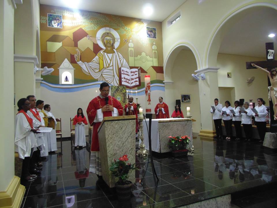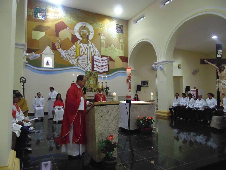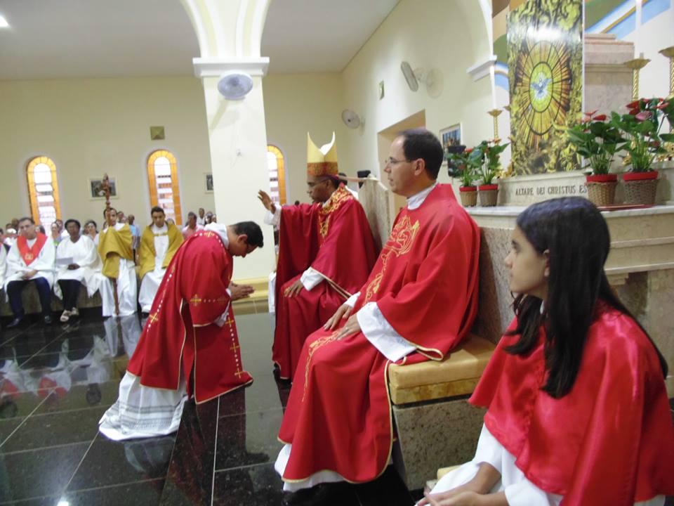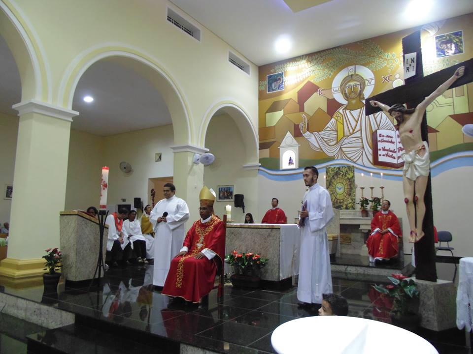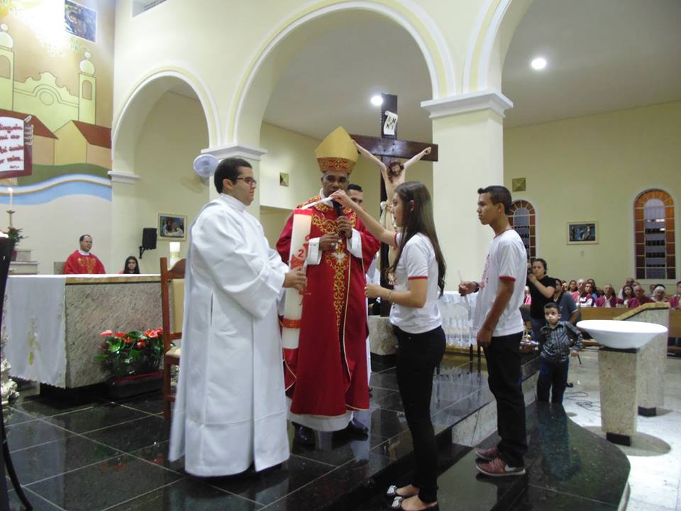 A celebração foi tranquila, houve antes da homilia a apresentação dos crismandos feita pelo Pároco ao Bispo, após a homilia foi feita a renovação das promessas do Batismo onde dois crismandos foram até o Círio Pascal e acenderam suas velas e passaram a chama para os demais, em seguida todos foram ungidos com o óleo do Crisma recebendo o sacramento confirmando assim a fé batismal.