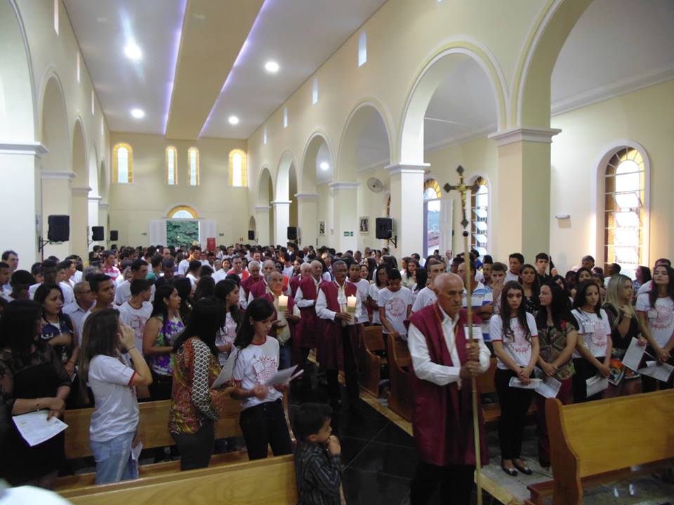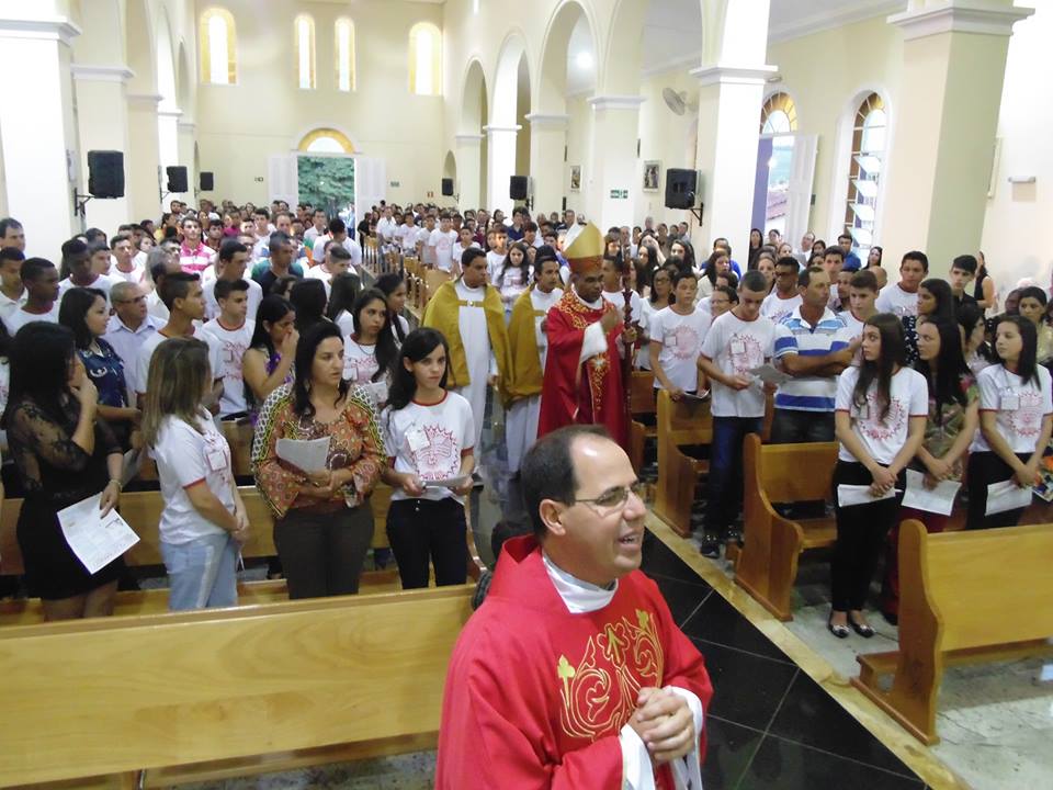 Na noite da última sexta-feira, dia 18 de novembro do ano 2016, aconteceu na Igreja Matriz Nossa Senhora Aparecida em Ilicínea – MG, a Celebração Eucarística com o Sacramento do Crisma, presidida pelo nosso Bispo Diocesano Dom Pedro Cunha Cruz e concelebrada pelo Pe. Luciano Tadeu de Oliveira, Pároco desta Paróquia. Às 18:50 fez-se à entrada dos 104 crismandos acompanhados pelos seus padrinhos/madrinhas, sendo que ás 19:00 iniciou-se a Celebração Eucarística.