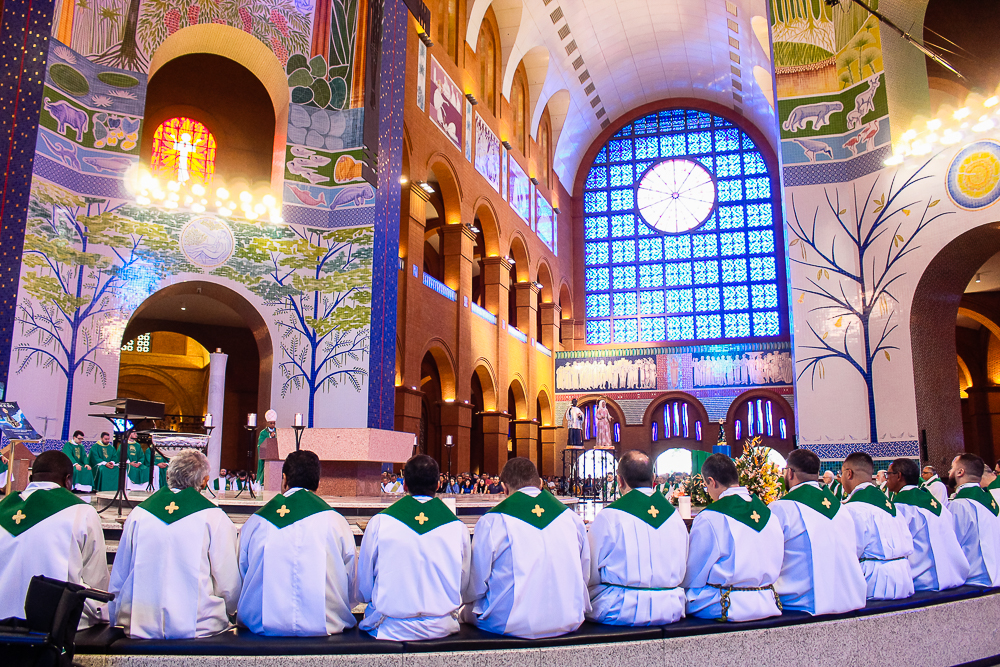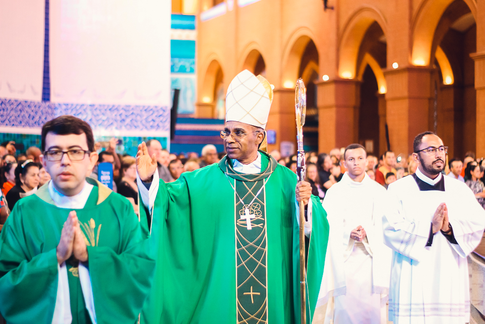 Em sua homilia, Dom Pedro refletiu sobre o tema/dom da fé a luz do evangelista Mateus e ponderou que estar no Santuário Nacional significa uma expressão da nossa fé. No entanto, o Bispo salientou que a fé requer fidelidade a um só Deus, se pela fé, pela revelação, Deus se dirige e se doa ao homem, pela fé o homem reponde a Deus que se revela por amor, afirmou. Quem tem uma fé tíbia não resiste aos desafios do deserto, explicou Dom Pedro, e não vê a realização da promessa de Deus, assim a fé requer um ato de gratidão para com Deus, recordando os grandes feitos que Ele realizou em nossa história e em nossa vida.