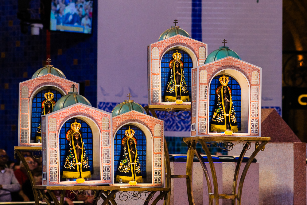 Virgem Mãe Aparecida, viemos a este Santuário para pedir vossa intercessão,na esperança de aumentarmos a nossa fé e vivermos o anúncio e testemunho no mundo que precisa, cada vez mais do sol e da luz de cada cristão. Ajude-nos, querida Mãe, a discernir e responder concretamente ao chamado de vosso Filho e, neste ano vocacional, a reconhecermos e fortalecermos nossa consciência do discipulado missionário de todos os batizados e batizadas. Vós que sois Mãe, Mestra e Discípula Missionária continue nos ensinando a ouvir o Evangelho da vocação e a responder com alegria e fé o dom de nossa vocação específica sempre com o coração ardente no caminho profético e missionário. Abençoe, Mãe querida, os peregrinos e romeiros da Diocese da Campanha que hoje vem, em vossa casa pedir as bençãos para que possam propagar ainda mais o Reino de vosso Filho e a viverem sua fé como graça e missão.