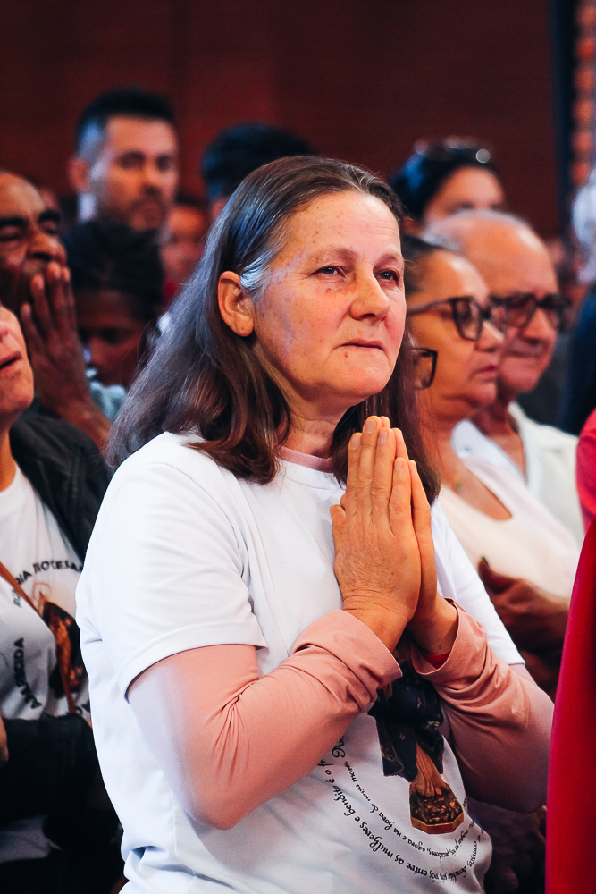 Às 06h os romeiros se encontraram diante da tribuna Dom Aloisio Lorscheider para a oração meditada do terço. Após, houve um tempo para o café da manhã até o momento da Santa Missa que foi presidida pelo nosso Bispo Diocesano e concelebrada pelo clero.