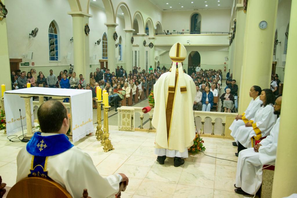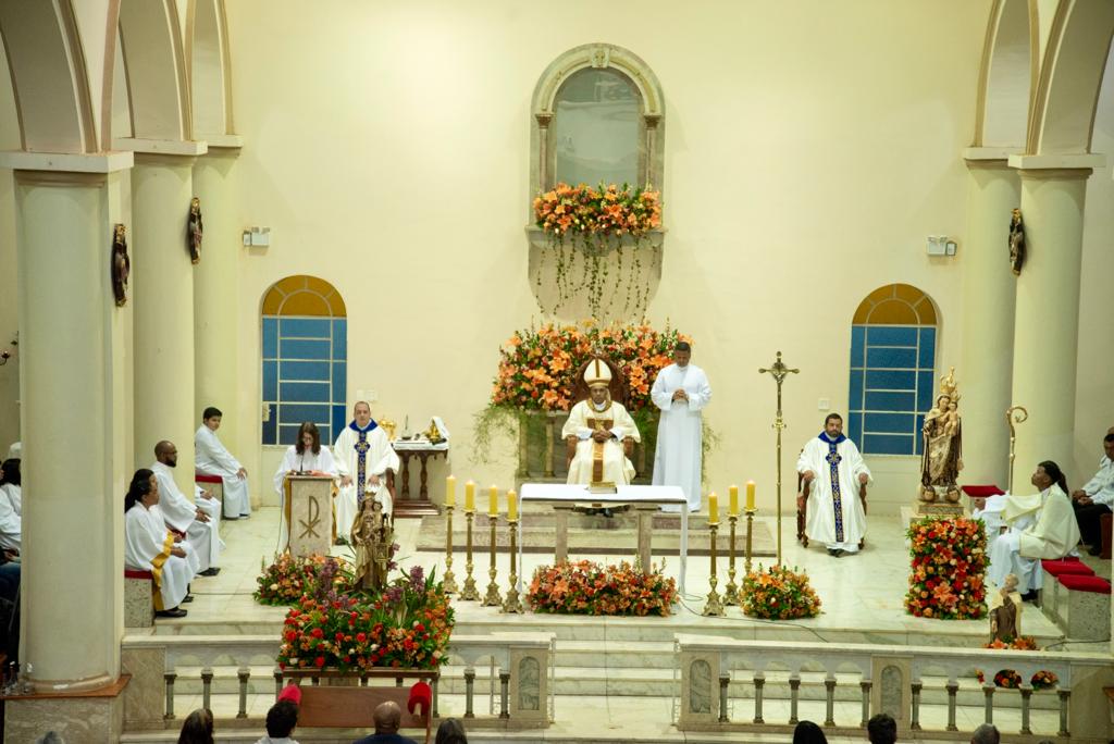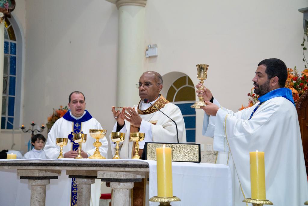 Neste ano tivemos a honra e a alegria de ter a Solenidade presidida por Dom Pedro Cunha Cruz, nosso Bispo Diocesano, que em sua profunda homilia, mostrou-nos a maravilhosa presença da Virgem Santíssima na história da nossa Igreja. Uma belíssima celebração que teve a participação de nossos padres, Ivan e Paulo Sérgio.
