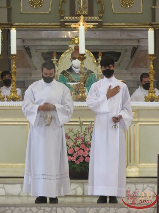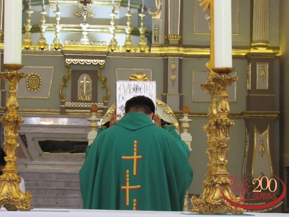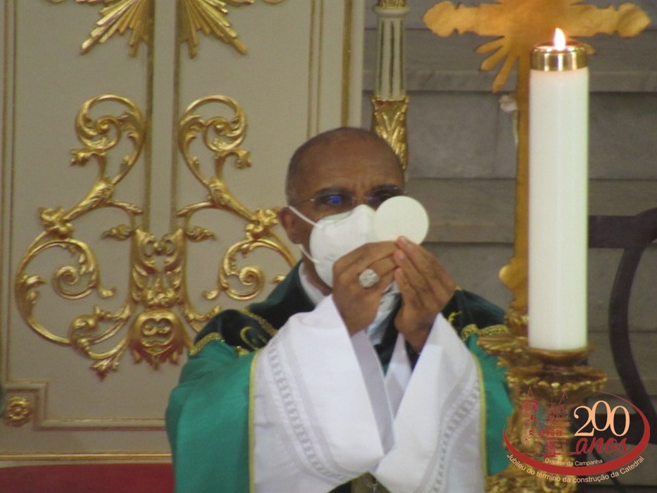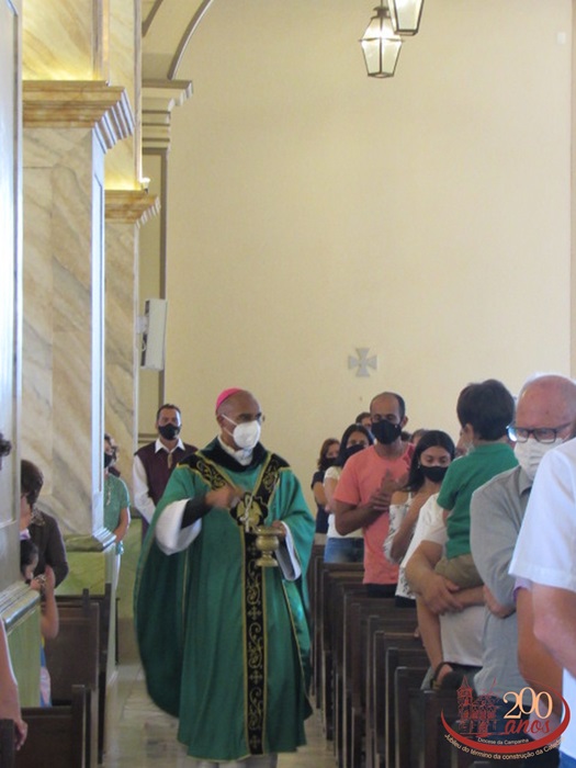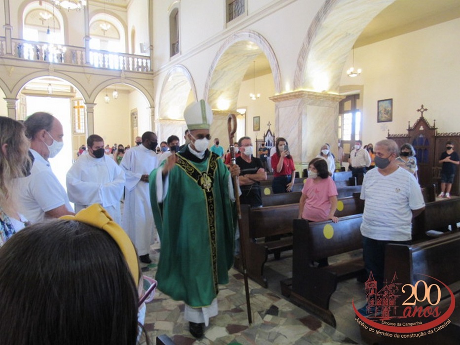 O bispo diocesano, Dom Pedro Cunha Cruz presidiu, na manhã deste domingo, 17 de outubro, na Catedral Santo Antônio, em Campanha, celebração eucarística que marcou abertura da fase diocesana do Sínodo 2021-2023. Concelebraram a missa: o pároco, cônego Bruno César Dias Graciano; e o pe. Bruno dos Santos Moreira, vigário paroquial e reitor do Seminário Propedêutico São Pio X. A animação da missa ficou a cargo do grupo musical Shalom.