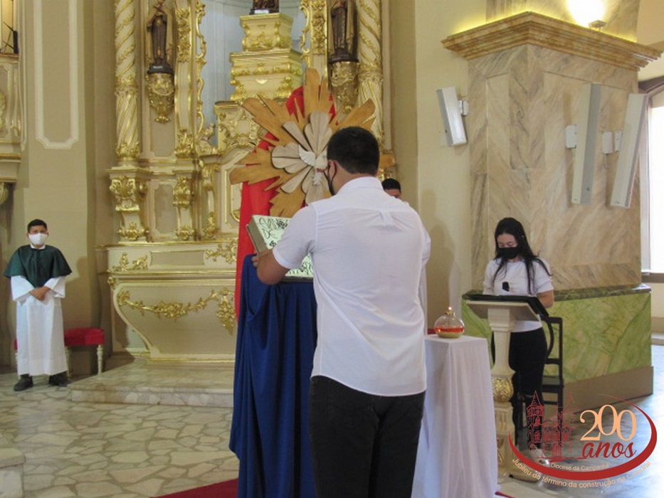 A abertura solene foi realizada em Campanha, e todas as comunidades foram motivadas a realizar, em nível paroquial, a celebração de abertura. Foi um gesto de unidade com toda igreja do Brasil e do mundo. A proposta elaborada pela equipe diocesana da Pastoral Litúrgica foi que cada paróquia preparasse um local onde foi colocado o evangeliário e o símbolo do Espírito Santo. E as paróquias se esmeraram no capricho, como você pode acompanhar no canal da Pascom diocesana no Instagram fotos de diversas comunidades diocesanas: https://www.instagram.com/pascomdiocesedacampanha/ . A Pascom também incentivou a formação de uma rede de comunicação para a transmissão da missa de Campanha: as paróquias que não transmitiram missa no horário foram convidadas a compartilhar em suas redes sociais a celebração direto da catedral.