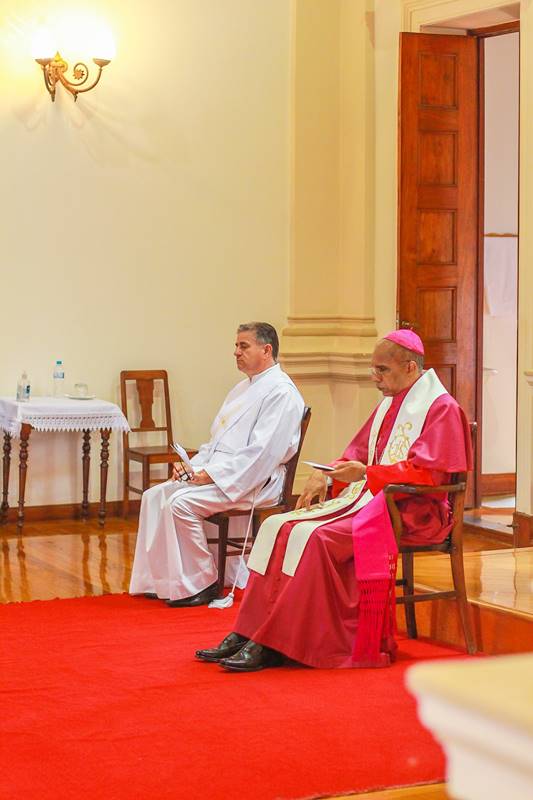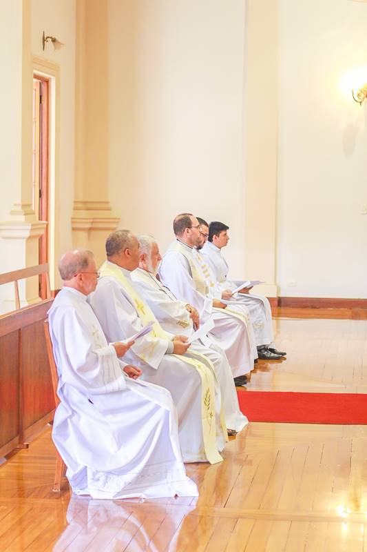 Iniciando a celebração, o Cônego Bruno Cesar Dias Graciano, Chanceler do Bispado, procedeu a leitura das provisões. Ato contínuo, os padres realizaram a Profissão de Fé e o Juramento de Fidelidade. No momento da Palavra de Deus, Dom Pedro exortou a todos a buscarem sempre servir da melhor forma possível, avançando na maturidade cristã e fidelidade a Jesus Cristo e à Igreja.