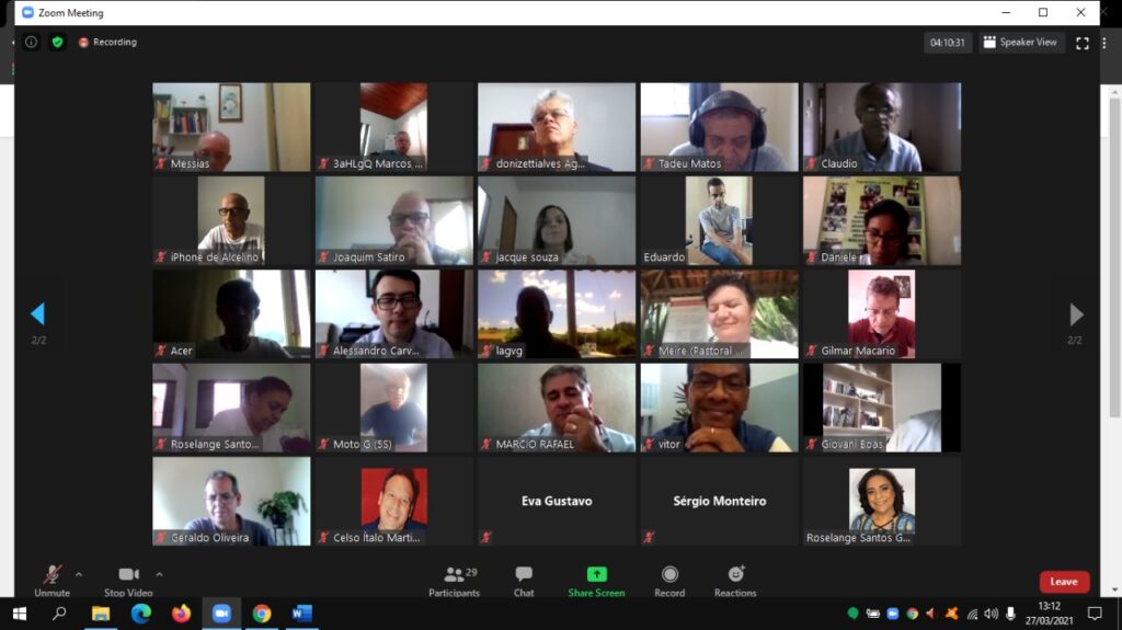 No último sábado, dia 27 de março, candidatos ao diaconato permanente, alunos da Escola Diaconal São Lourenço Mártir, realizaram um Seminário de Pastoral, sob a orientação do Pe. Jean Poul Hansen, coordenador diocesano de pastoral, com vistas à inserção dos mesmos na caminhada pastoral da Diocese, especialmente nas Pastorais Sociais e naquelas relacionadas diretamente com a Palavra de Deus, conforme pedido do Exmo. e Revmo. Bispo Diocesano, Dom Pedro Cunha Cruz, na última reunião do Conselho Diocesano de Pastoral (CODIPA) de 2020.