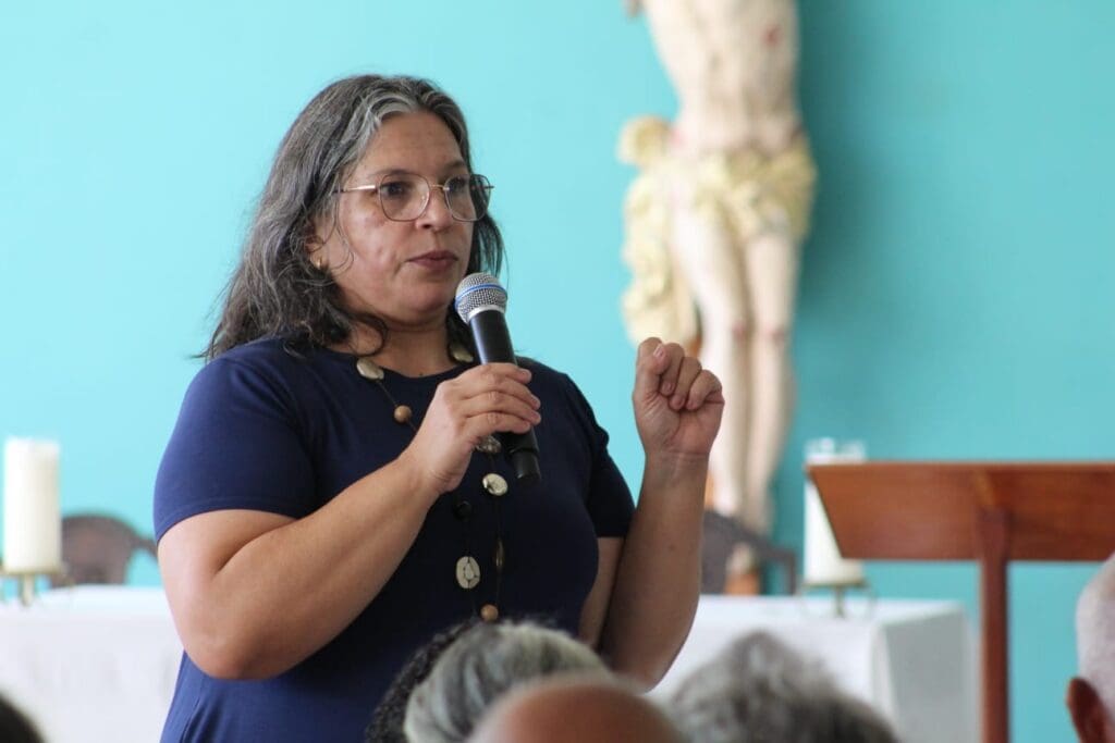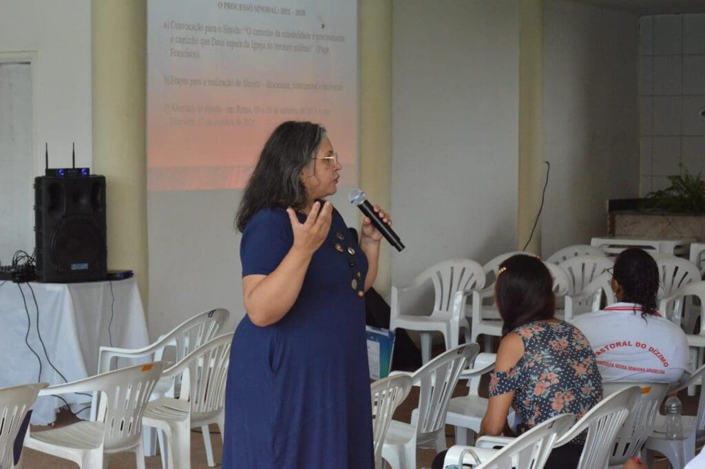 O encontro teve início com a valiosa contribuição de Mirian Cristiano, Secretária Diocesana de Pastoral. Em sua fala, Mirian resgatou as etapas do Sínodo proposto pelo saudoso Papa Francisco, recordando a importância de sermos uma “Igreja Sinodal” — aquela que caminha junta, escuta seus membros e não tem medo de ir ao encontro das periferias existenciais.