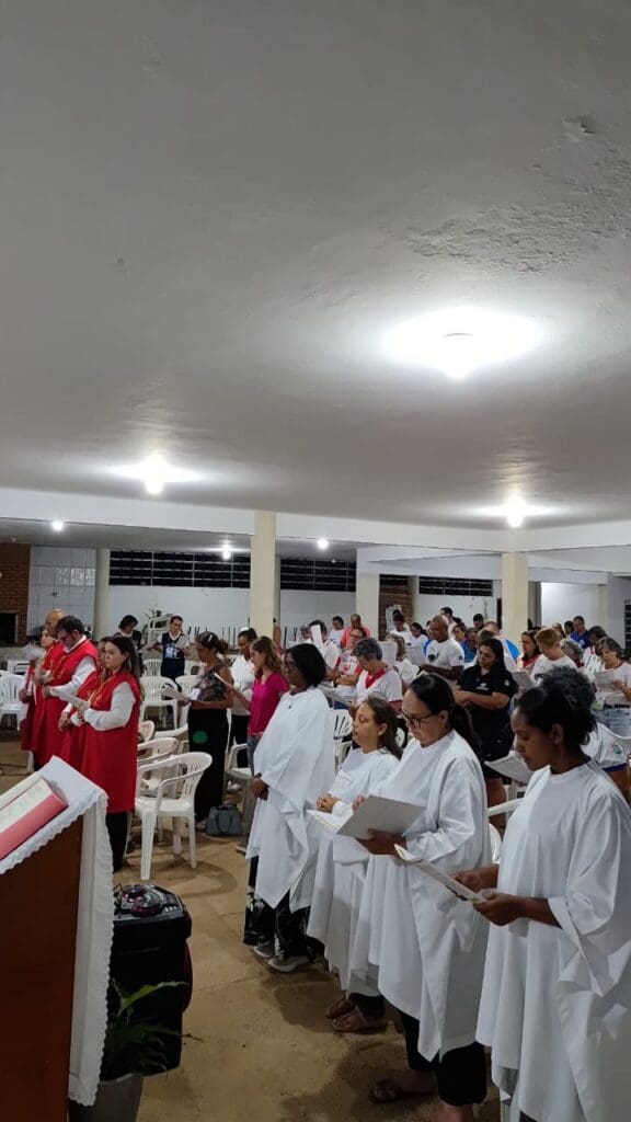 Para selar esse dia de trabalho e fraternidade, a Assembleia foi coroada com a celebração da Santa Missa. Na Eucaristia, ápice da nossa fé, depositamos no altar do Senhor todos os projetos e sonhos discutidos, pedindo a graça do Espírito Santo para que o que foi planejado no papel se transforme em vida e testemunho na nossa comunidade.