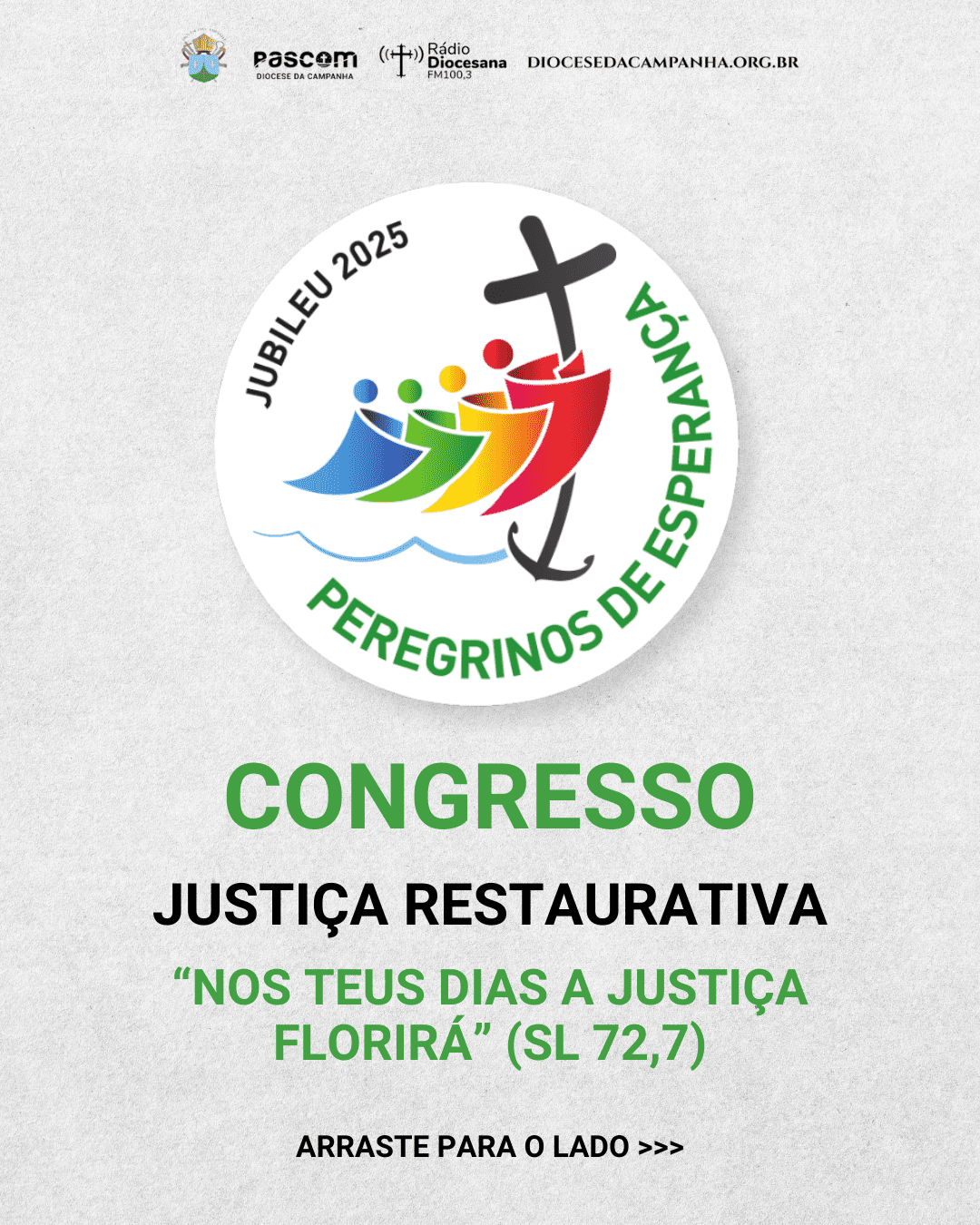Congresso sobre Justiça Restaurativa A Diocese da Campanha, por meio da Coordenação Diocesana do Jubileu da Esperança 2025, tem a honra de convidar 2 de maio de 2025