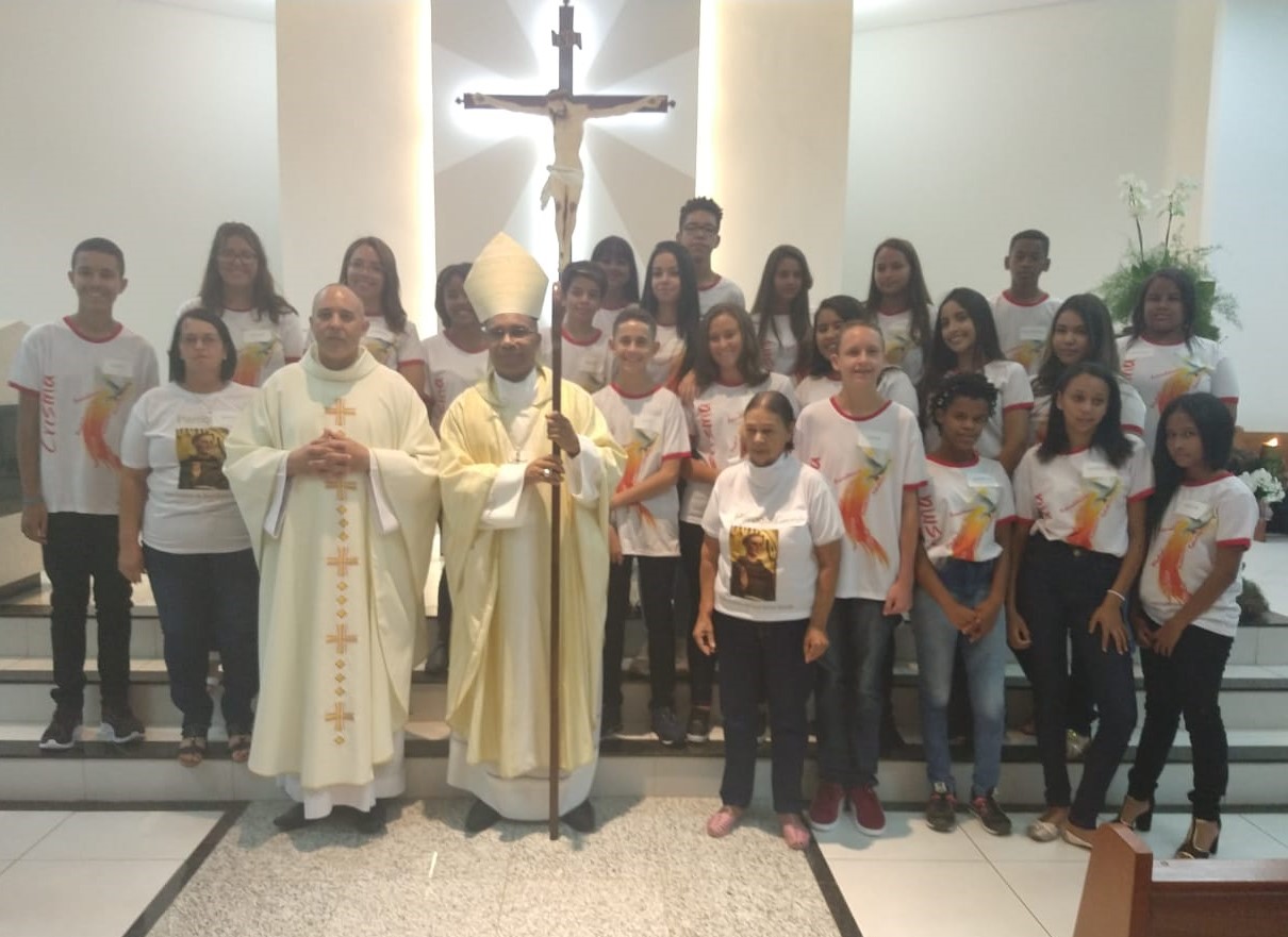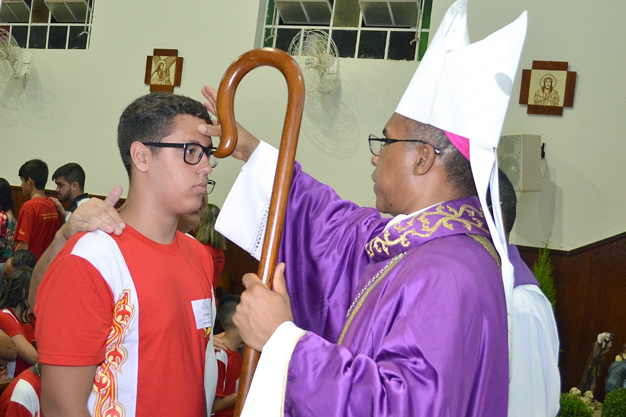 DOM PEDRO PRESIDE CELEBRAÇÃO DA CRISMA NA PARÓQUIA FREI GALVÃO Dom Pedro Cunha Cruz conferiu o Sacramento da Crisma a 48 adolescentes e 04 adultos da Paróquia Santo Antônio 19 de dezembro de 2018