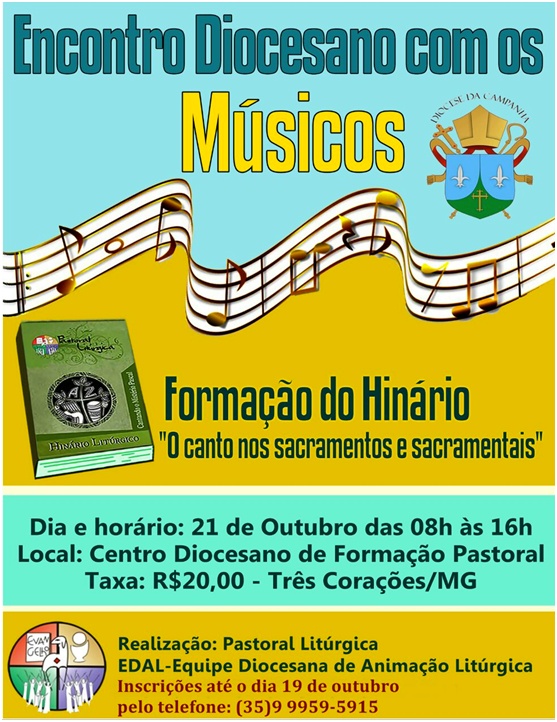 Encontro Diocesano com os músicos Acontecerá no dia 21 de Outubro de 2017, das 08h às 16h, no Centro de Formação Pastoral em Três 9 de outubro de 2017