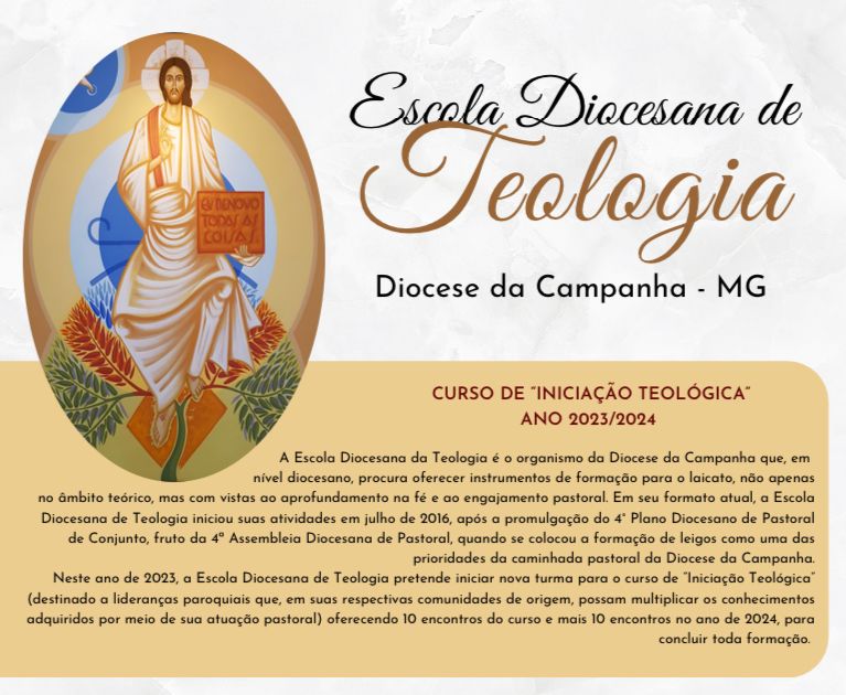 As inscrições para a Escola Diocesana de Teologia (EDT) ainda estão abertas! Algumas informações: O curso de iniciação teológica contará com a parceira da Faculdade Católica de Pouso Alegre. Através desta 1 de março de 2023