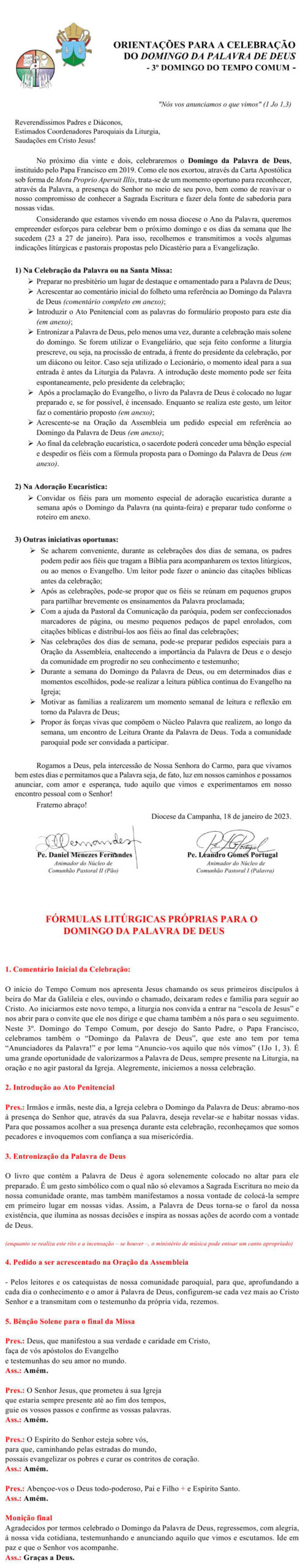 Roteiro de Adoração e Orientações para o DOMINGO DA PALAVRA DE DEUS DOWNLOAD ROTEIRO DE ADORAÇAO – DOMINGO DA PALAVRA DE DEUS 19 de janeiro de 2023