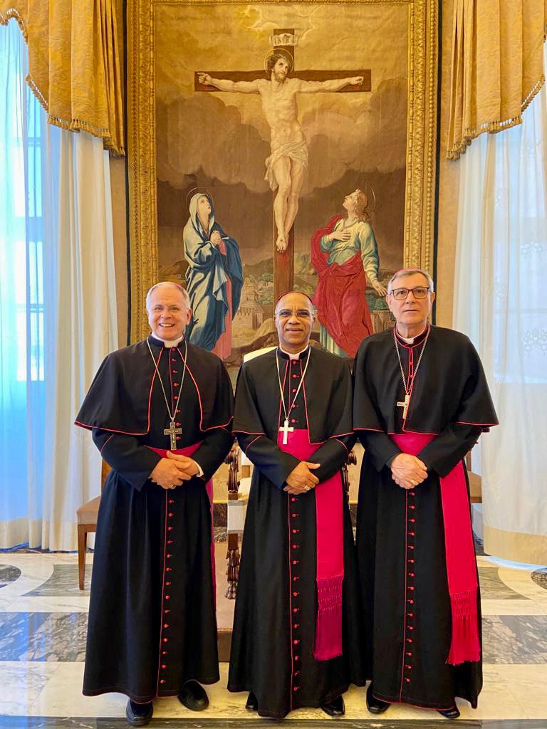 (ARCE)BISPOS SÃO RECEBIDOS NA SECRETARIA GERAL DO VATICANO EM ROMA Os (arce)bispos dos Regionais Leste 2 (Minas Gerais) e Leste 3 (Espírito Santo), foram recebidos nessa sexta-feira (21), na 22 de outubro de 2022