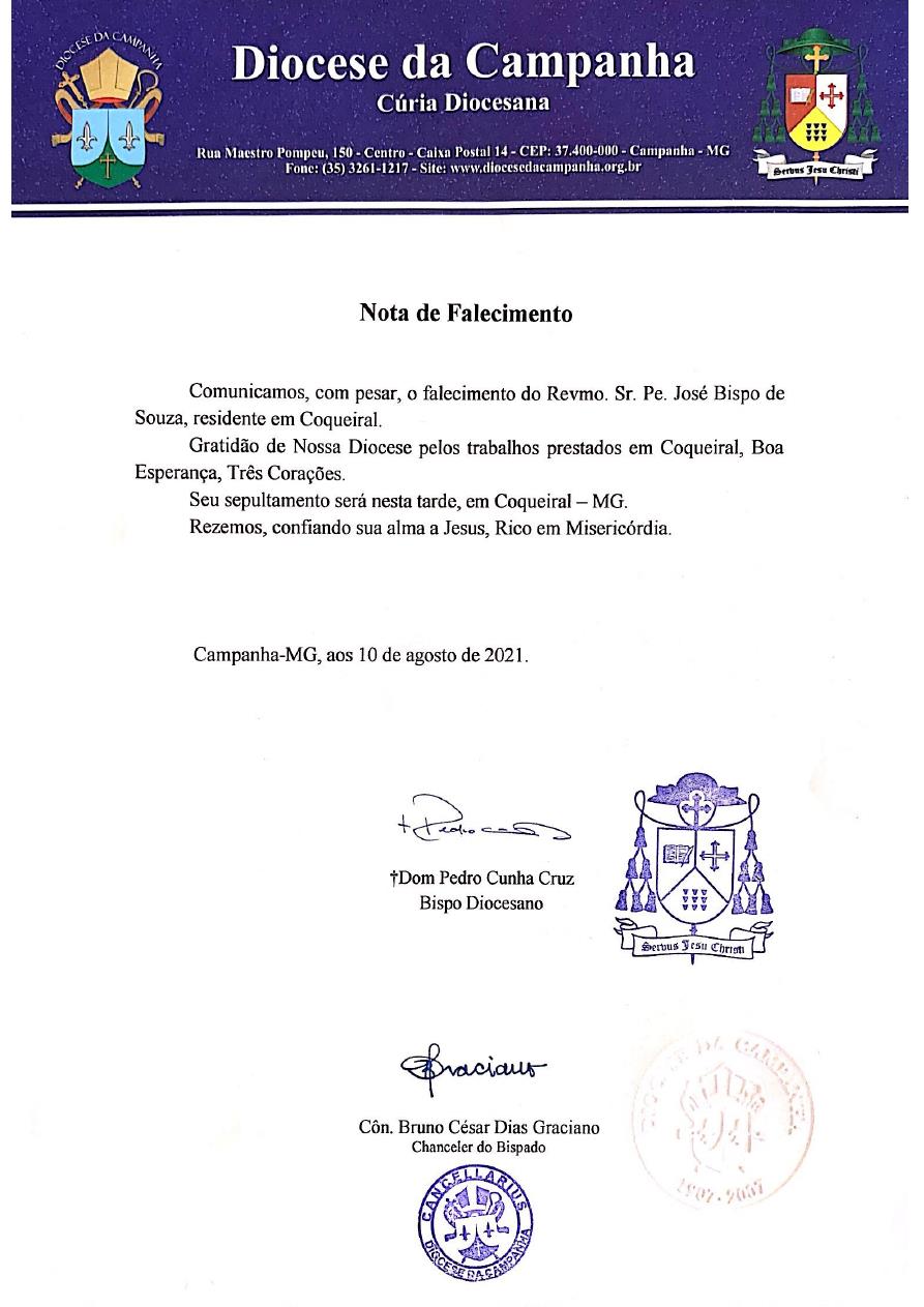 NOTA DE FALECIMENTO Com muita tristeza comunicamos o falecimento da Munique Evelin da Silva Rangel, Coordenadora Paroquial da Catequese em Pouso Alto 8 de setembro de 2021
