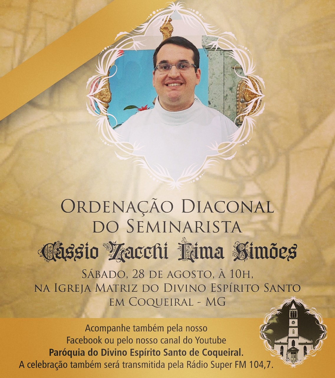 Ordenação Diaconal do Seminarista Cássio Zacchi Simões O povo de Deus, pertencente à Paróquia do Divino Espírito Santo, em Coqueiral-MG, depois de tanto tempo, jubilosamente se 1 de setembro de 2021