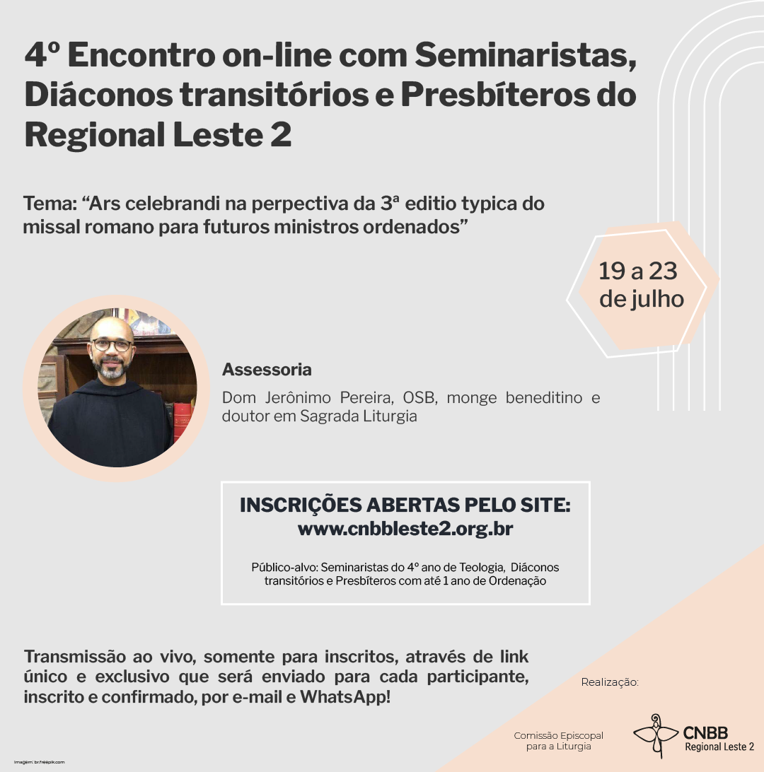 Comissão de Liturgia promoverá formação on-line para seminaristas, diáconos transitórios e presbíteros Estão abertas as inscrições para a 4ª edição do Encontro com seminaristas do 4º ano de Teologia, diáconos transitórios 29 de junho de 2021