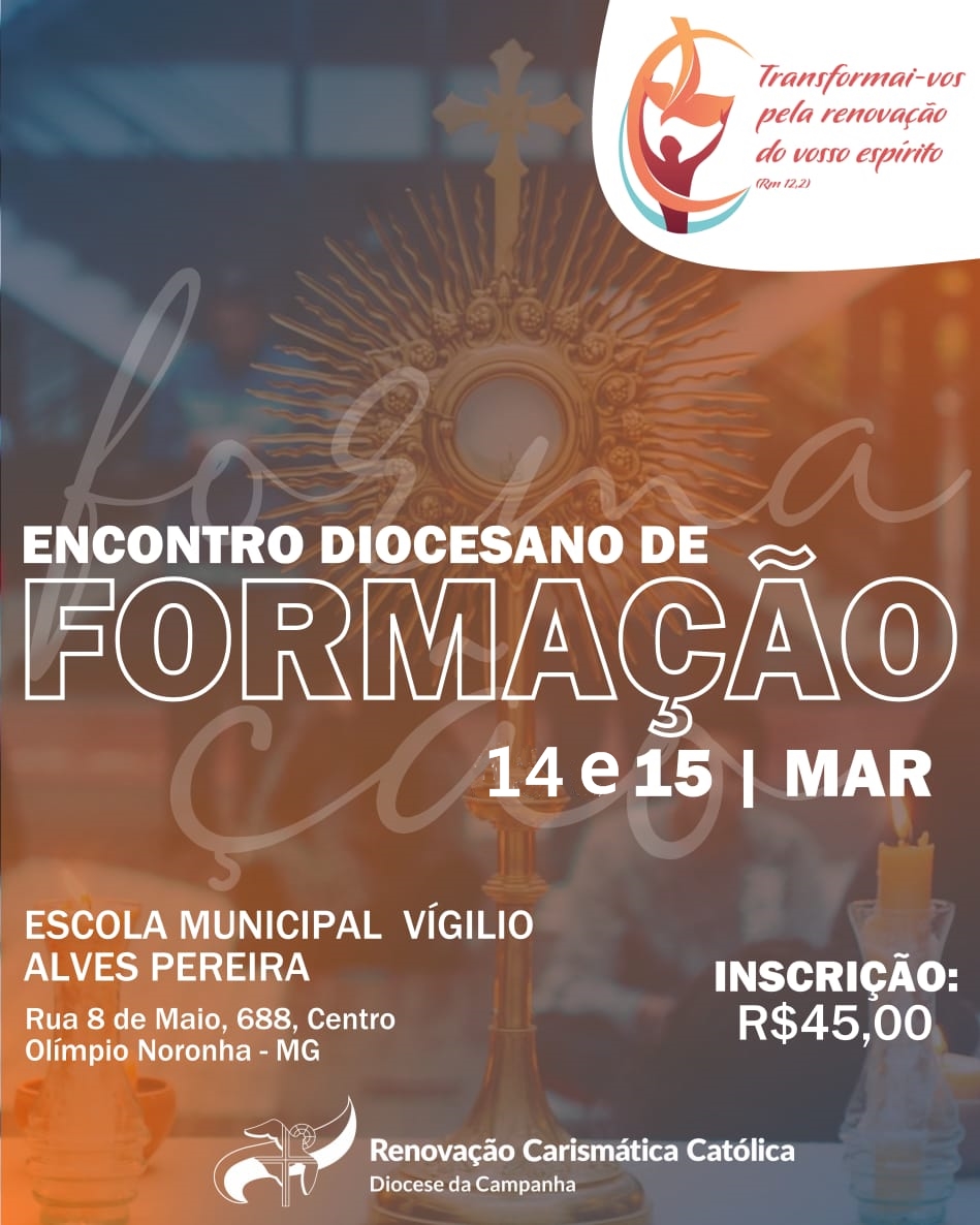 Vem aí o Encontro Diocesano de Formação da RCC nos dias 14 e 15 de março Você é chamado a participar conosco deste momento tão profundo de conhecimento e muita espiritualidade! Sua presença é de 19 de fevereiro de 2020