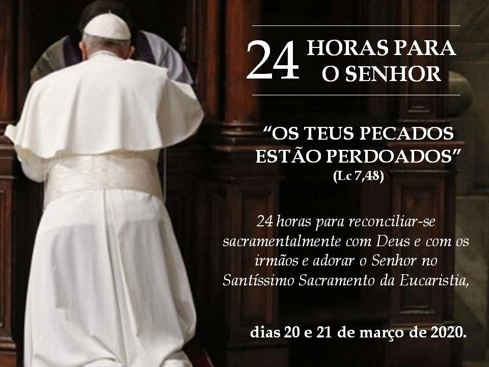 Em 20 e 21 de março a Igreja dedicará “24 horas para o Senhor” A iniciativa é do Papa Francisco e acontece por sua convocação há 7 anos, desde 2014. Em 2020, as 15 de fevereiro de 2020