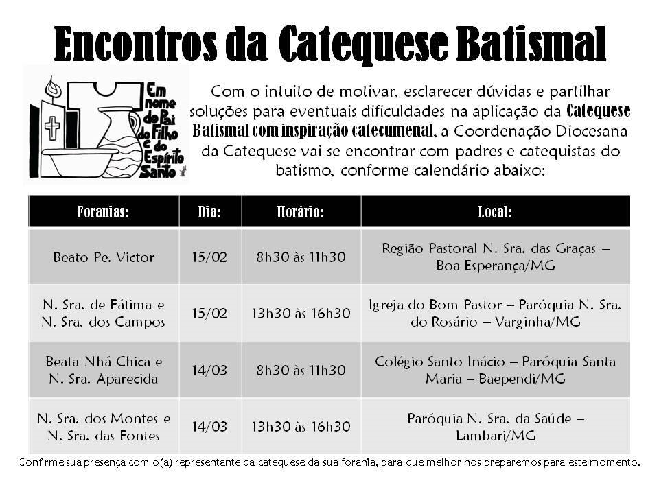 COORDENAÇÃO DIOCESANA DA CATEQUESE PROMOVERÁ ENCONTROS SOBRE CATEQUESE BATISMAL 5 de fevereiro de 2020