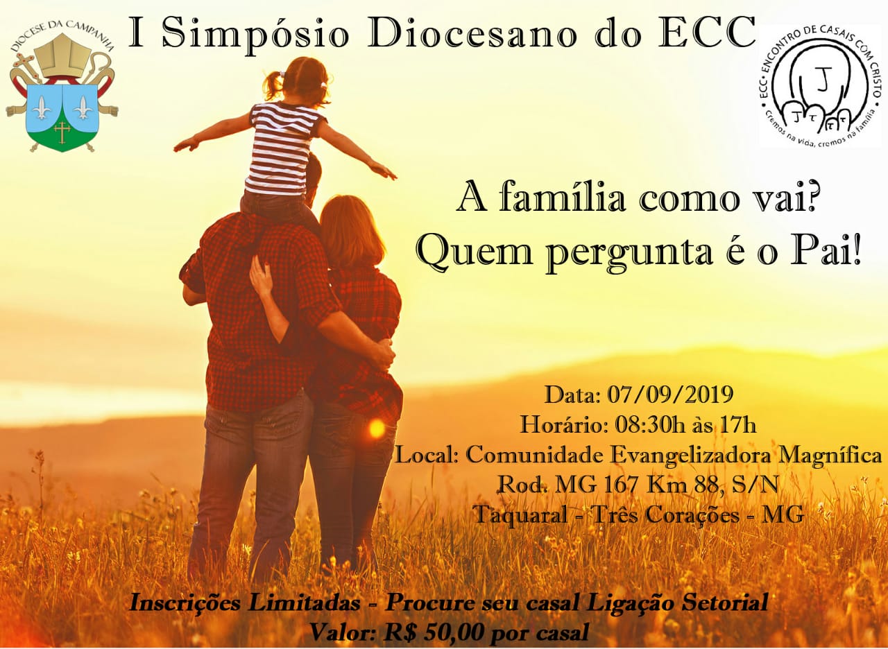 ECC prepara o I Simpósio para as Familias O ECC – Encontro de Casais com Cristo organizará no dia 07 de setembro, na Comunidade Evangelizadora Magnificat em 17 de agosto de 2019