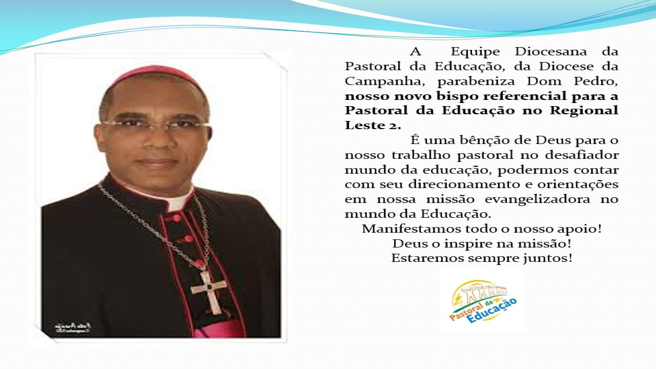 Dom Pedro, nosso bispo, é o novo bispo referencial para a Pastoral da Educação no Regional Leste 2 6 de junho de 2019