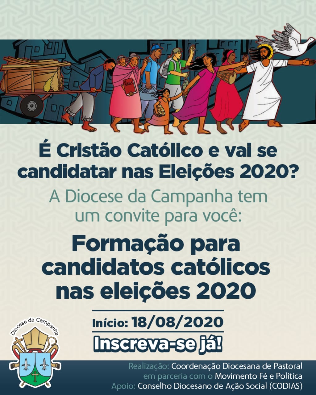 Formação para pré-candidatos nas eleições 2020 começou nesta terça-feira Começou nesta terça-feira, 18/08, a formação on-line oferecida pela Diocese da Campanha aos fiéis que pretendem se candidatar aos 19 de agosto de 2020