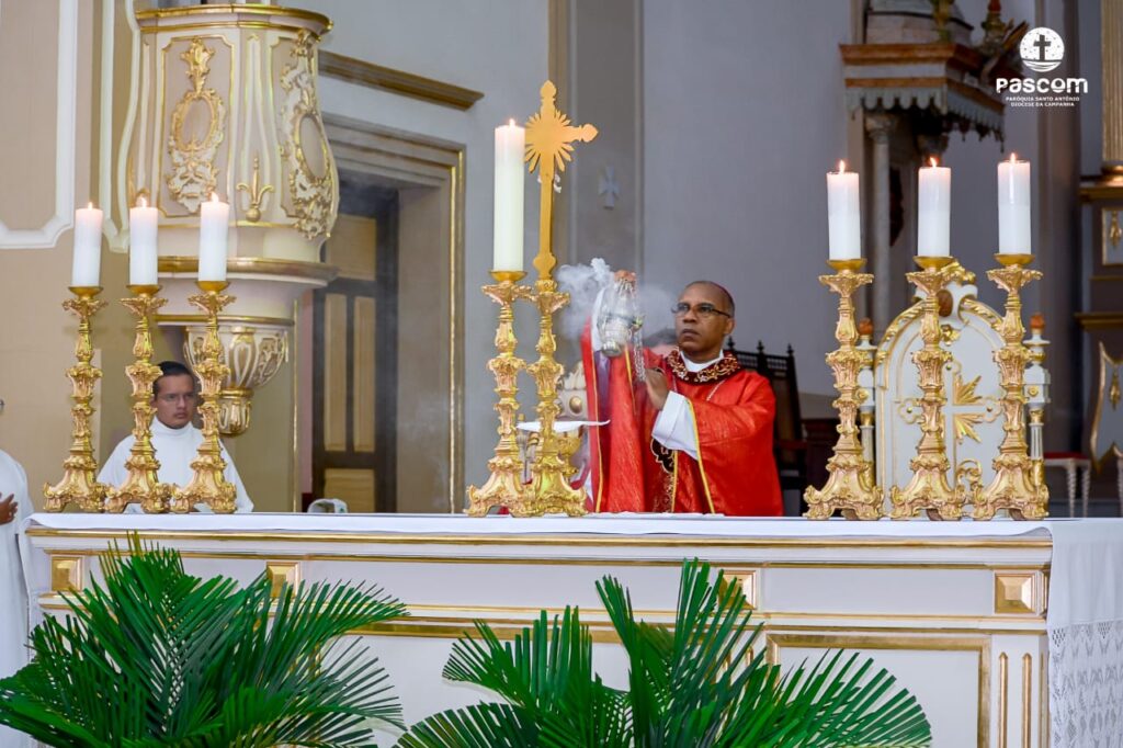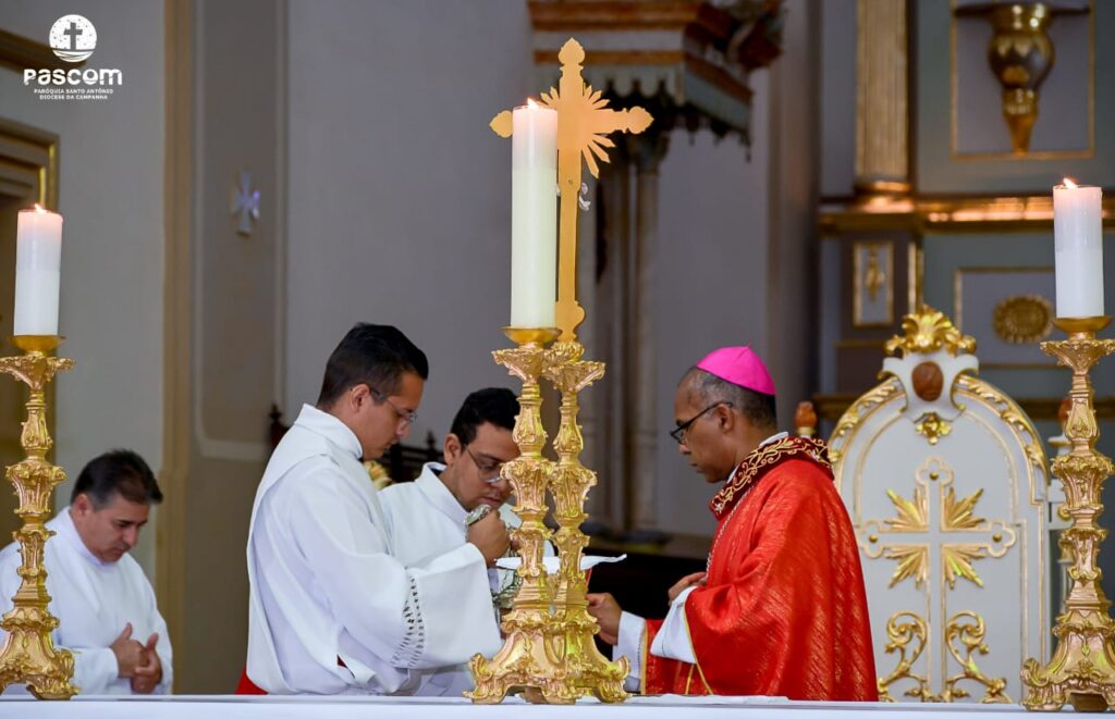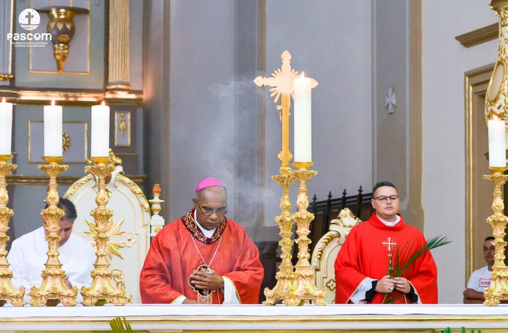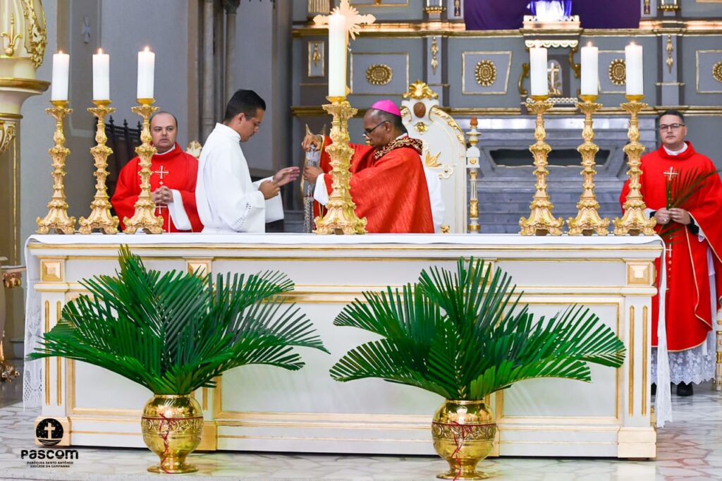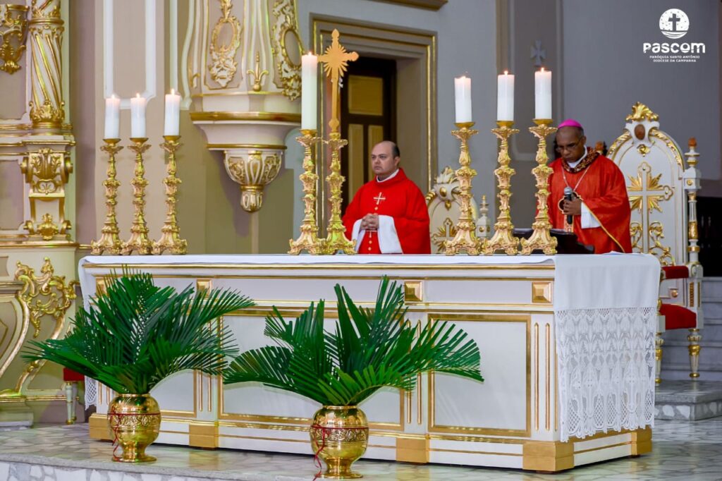 Na manhã do domingo, dia 5 de abril, teve início a Semana Santa 2020 na paróquia Santo Antônio, sé episcopal de Campanha. Uma Semana Santa muito diferente para todos os cristãos católicos que, em tempos de pandemia, estão impossibilitados do encontro comunitário. A celebração matutina, em Campanha, foi presidida pelo bispo diocesano, D. Pedro Cunha Cruz; e concelebrada pelo pároco, cônego Bruno César Dias Graciano, chanceler do bispado e pelo vigário, pe. Wendel de Oliveira Rezende, reitor do Seminário Propedêutico São Pio X.
