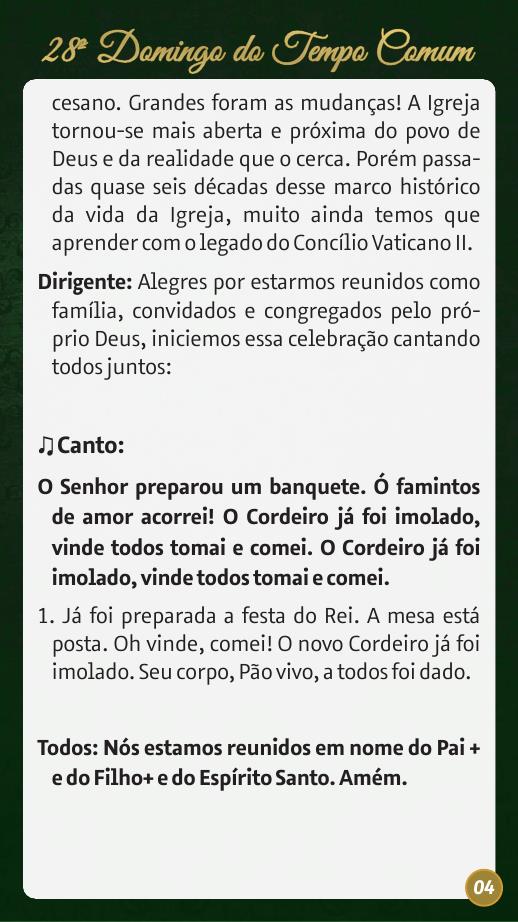 Baixe os arquivos da celebração, imprima os roteiros ou acompanhe pelo celular.