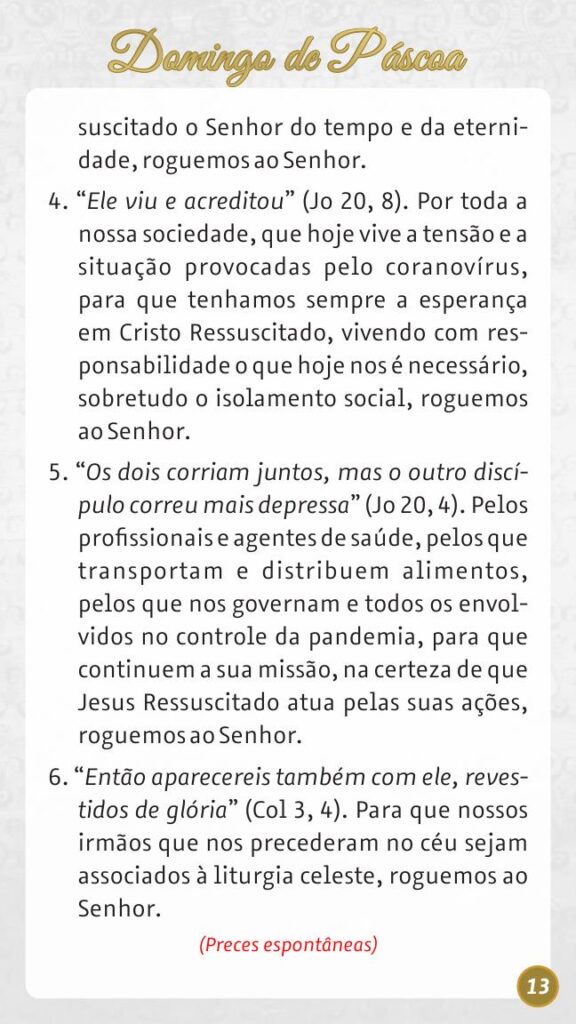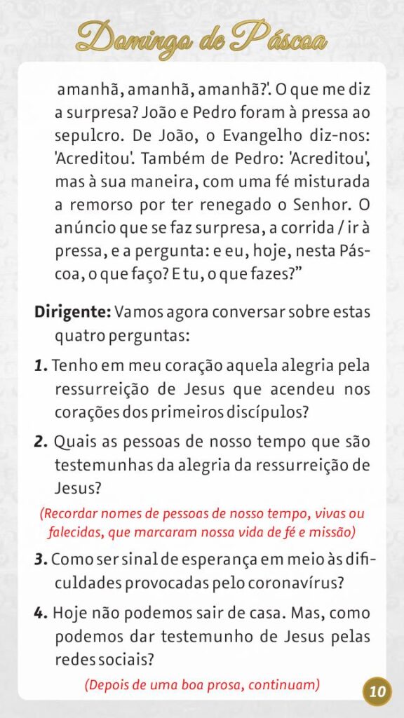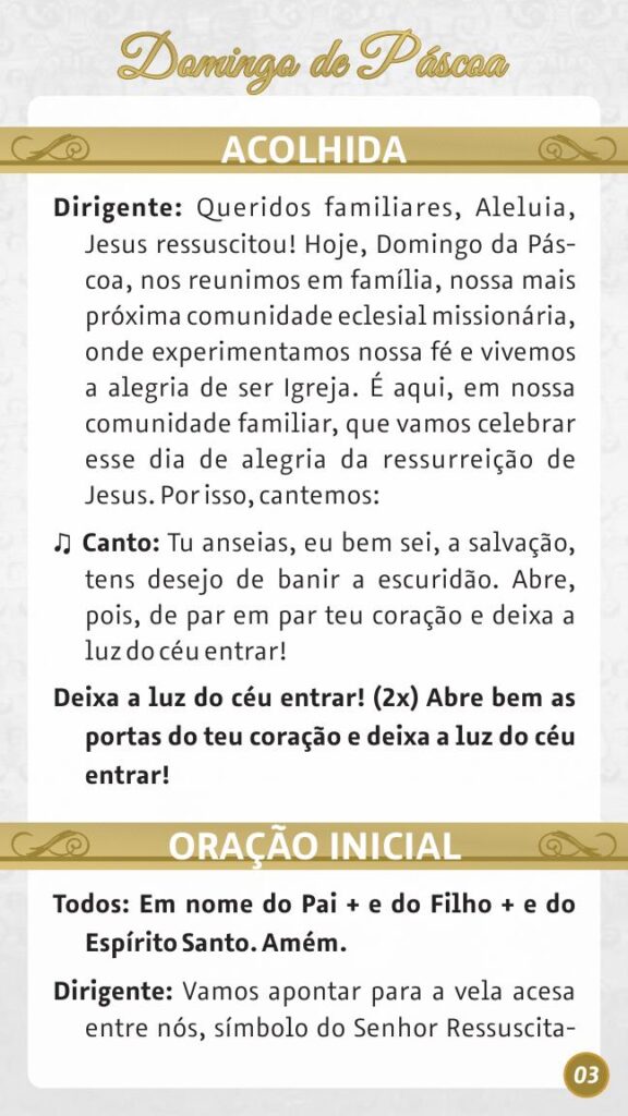 Que a ressurreição de Jesus abra o nosso coração e fortaleça a fé de nossas famílias.
