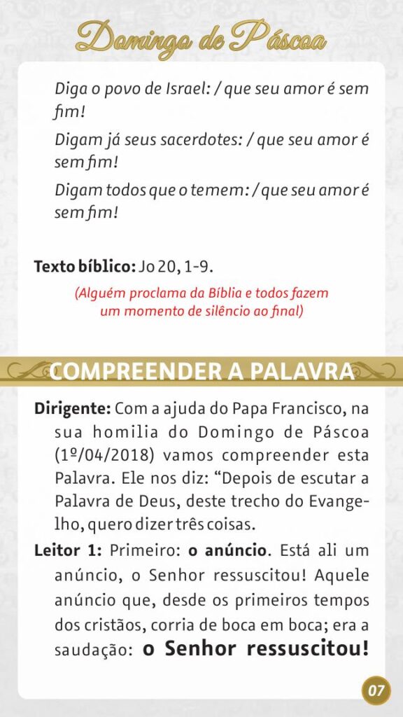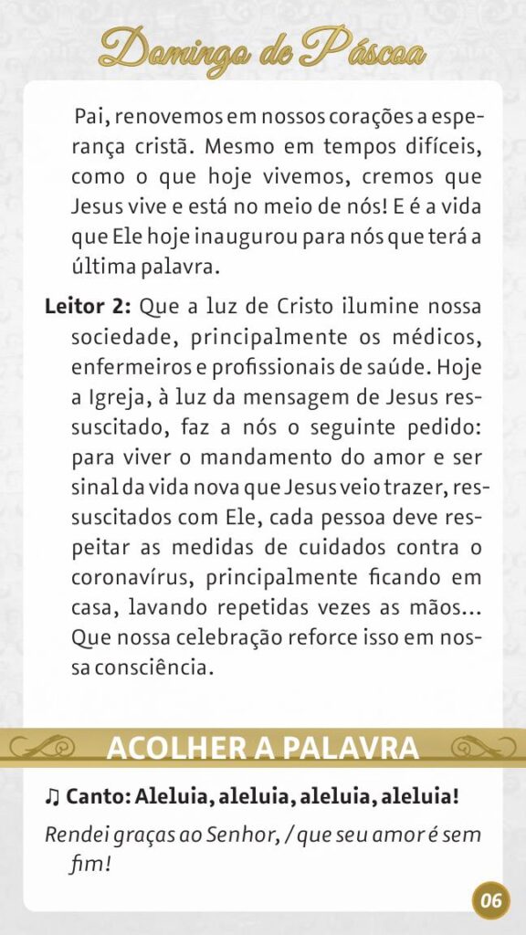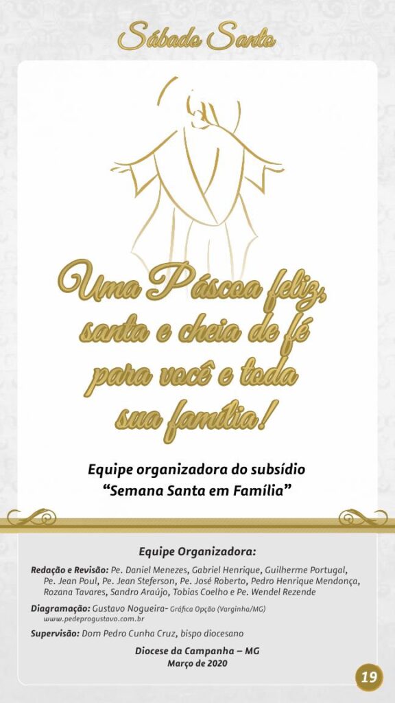 Vamos celebrar a ressurreição do Senhor em família, agradecendo a ele por seu amor e pela oportunidade de termos vivenciado mais uma Semana Santa.