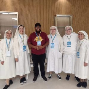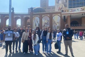 No terceiro dia do evento, fomos iluminados pelo lançamento do Projeto United World Communities (Comunidade Mundo Unido – https://www.unitedworldproject.org/pt-br/united-world-community/) que busca através da economia, política, esporte, arte, ecologia e outras áreas concretizar ações em prol da fraternidade universal. Além desse lançamento, a juventude dos Focolares se reuniu com bandeiras de todos os países participantes do Genfest reforçando ardentemente que “Nós escolhemos a Paz” e que “O Mundo Unido é possível”. Esse pensamento ecoa nas palavras de Margaret Karram, presidente do Movimento dos Focolares que nos diz: “[…] é possível sermos construtores de paz. E para fazer isso é preciso constância e paciência, a fim de olhar com amor para todos os irmãos e irmãs que encontramos em nosso caminho. Deste Genfest, aprendemos que a paz começa por mim, com pequenos gestos de atenção pelas pessoas, pelos nossos povos e pela criação. Dissemos isso várias vezes nos últimos dias: derrubando todas as barreiras que nos dividem, para viver pela fraternidade. E podemos fazer isso ao descobrir que a nossa humanidade comum é mais importante do que todas as nossas diferenças”. Após esse momento, participamos da Celebração da Santa Missa, na Basílica Nossa Senhora Aparecida, presidida pelo Núncio Apostólico no Brasil, Dom Giambattista Diquattro, concelebrada pelo arcebispo de Aparecida, Dom Orlando Brandes; pelo Padre Jésus Móran, co-presidente do Movimento dos Focolares e por diversos Padres do Movimento, além da participação dos Seminaristas, Religiosos e Religiosas, Focolarinos e Focolarinas, a juventude do Genfest e os devotos de Nossa Senhora Aparecida. À luz do Evangelho de Mc 6, 30-34, Dom Giambattista Diquattro, salientou em sua homilia: “O Genfest nos estimula a agir com compaixão, a iluminar mentes e a seguir o modelo de vida que Jesus nos apresentou, portanto, o tema Juntos para Cuidar, nos inspira a sermos pastores que dão vida, que compartilham, ensinam e promovem a fraternidade. O Genfest é um chamado para agirmos com compaixão, buscando o bem comum e construindo um mundo onde todos possam encontrar descanso e esperança”.