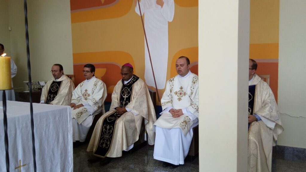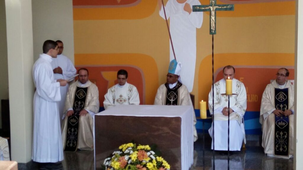 Na última segunda-feira, dia 29 de maio, em Pouso Alegre, a Comunidade Teológica Senhora do Carmo celebrou a sua padroeira, a Virgem Maria, contando com a presença de um número expressivo de sacerdotes (vindos de diversas partes de nossa diocese, além dos formadores dos seminários da província eclesiástica), dos nossos diáconos e dos seminaristas das 3 etapas formativas de nossa diocese e dos seminaristas teólogos das dioceses de Pouso Alegre e Guaxupé.