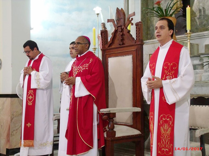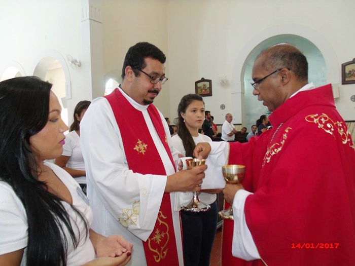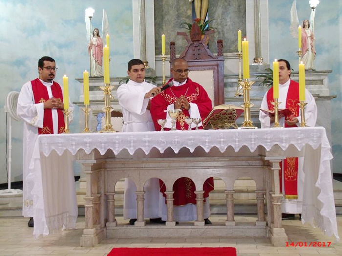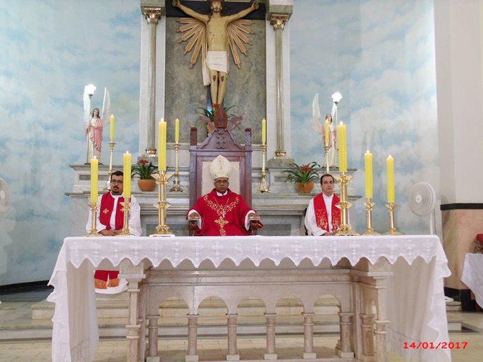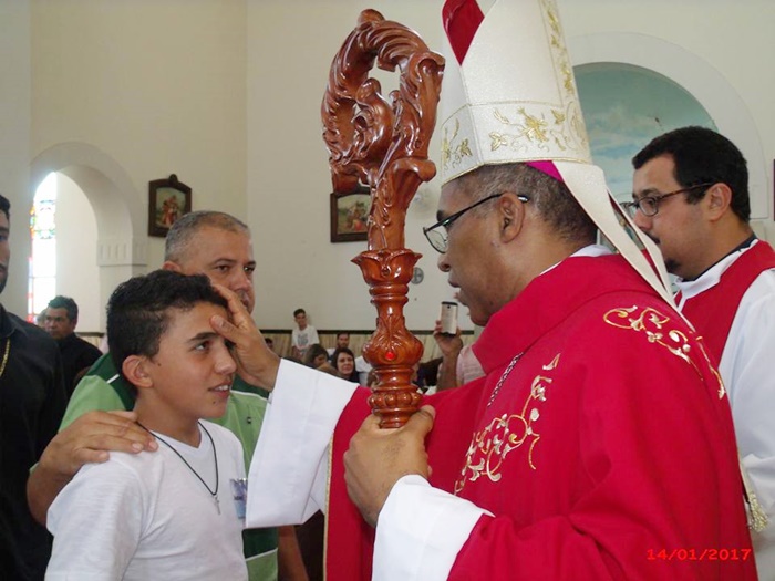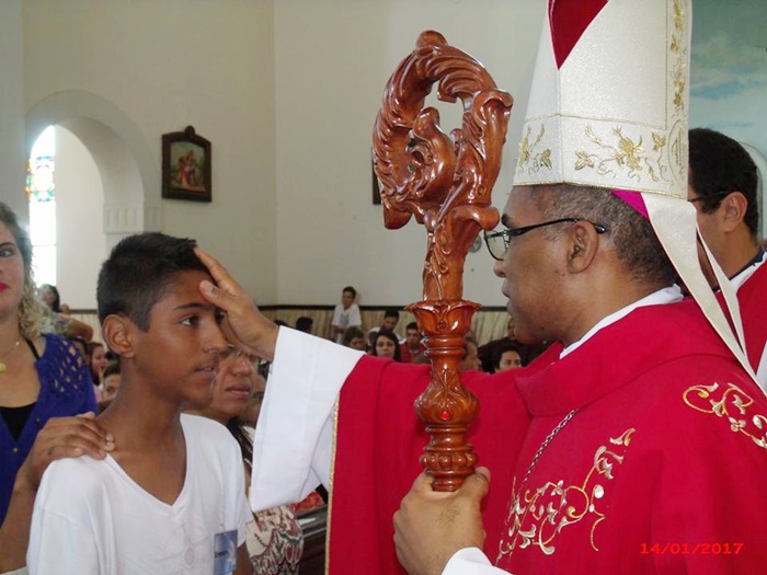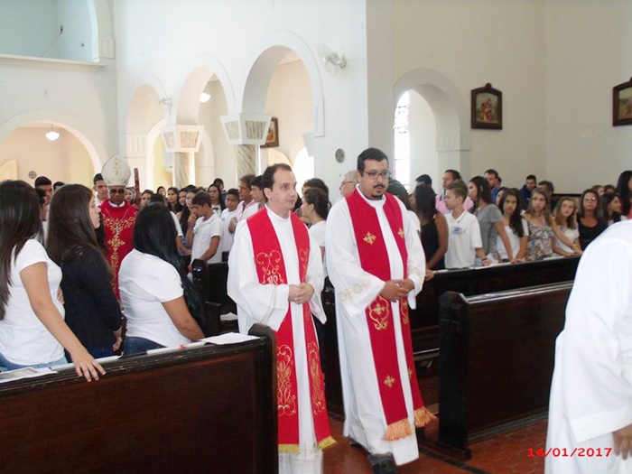 Foi realizada no dia 14 de janeiro, sábado, na Paróquia do Senhor Bom Jesus, a Celebração Eucarística da Crisma, presidida pelo nosso Bispo Diocesano Dom Pedro Cunha Cruz e concelebrada pelo Padre Bruno Leonardo, nosso administrador paroquial e pelo Frei Paulo Sérgio Fernandes, filho da cidade e que ministra seu dom sacramental hoje na cidade do Rio de Janeiro.