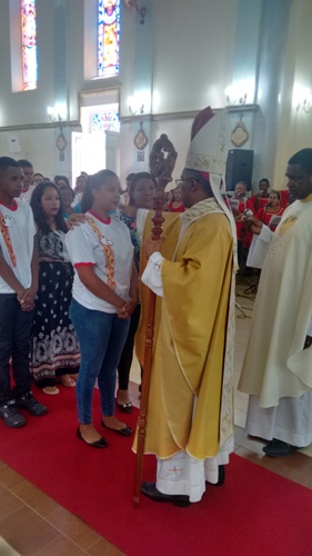 A paróquia viveu um momento rico de reflexão e oração com as palavras proferidas por Dom Pedro durante a sua homilia deixando claro que a função dos crismandos é, assim como o profeta Isaias, assumir um compromisso respondendo ao chamado de Deus “Eis-me aqui Senhor, envia-me.”
