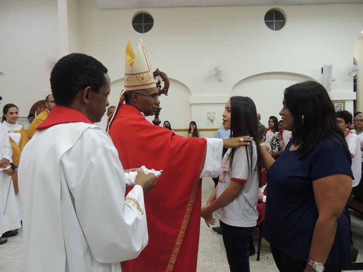 A celebração foi marcada pela fé do nosso povo. Dom Pedro exortou aos jovens e adultos a permanecerem firmes no caminho de Jesus Cristo e jamais se afastarem da Igreja. Nos instruiu a respeito dos dons e enfatizou a importância dos crismados ocuparem seu espaço junto à comunidade paroquial, sendo praticantes da justiça e colocando seus dons a serviço do próximo.