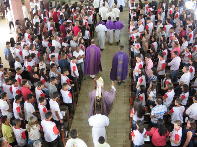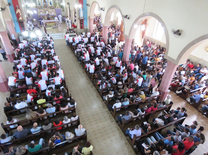 Dia especial e feliz onde 186 jovens receberam o Sacramento da Crisma em nossa paróquia, acolhidos pelo nosso Bispo Dom Pedro Cunha Cruz, Padres Dehon e Enderson. Foram confirmados na Fé, recebendo o Espirito Santo, um novo Pentecostes, e chamados, assim, a testemunhar seu amor a Deus pelo mundo. A partir deste dia os crismados se tornaram verdadeiros cristãos, cristãos adultos na Fé, corajosos, discípulos e missionários de Cristo, alegres, como deseja nosso querido Papa Francisco: que nos tornemos uma Igreja “em saída”, em Pentecostes.