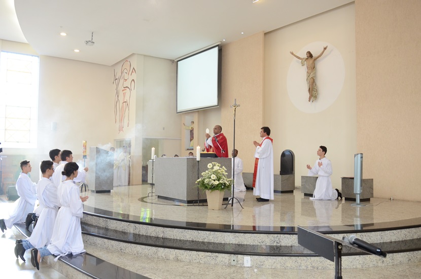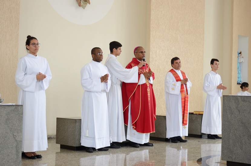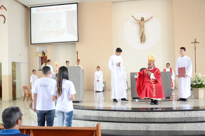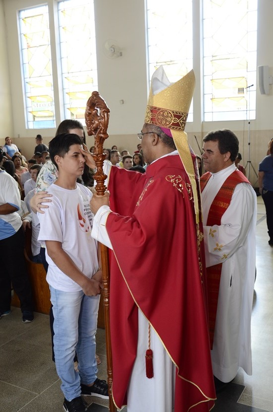 Nosso Bispo Diocesano Dom Pedro Cunha Cruz, presidiu as celebrações juntamente com o Pároco Padre Vitor Martins Ribeiro. Em seu diálogo com os Crismandos, Dom Pedro deixava a mensagem central do Sacramento da maturidade cristã: “A unção do crisma simboliza o selo espiritual que o crismando recebe, e o insere de maneira mais profunda na vida da comunidade. É o sacramento que completa o batismo e pelo qual recebemos os dons do Espírito Santo”. Por fim, Dom Pedro deixou como responsabilidade para cada um a missão para que neste Ano do Laicato, evangelizem e trabalhem com a alegria da unção.