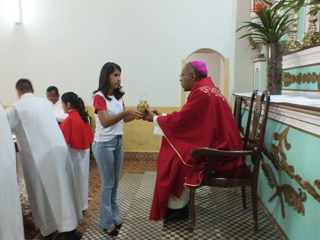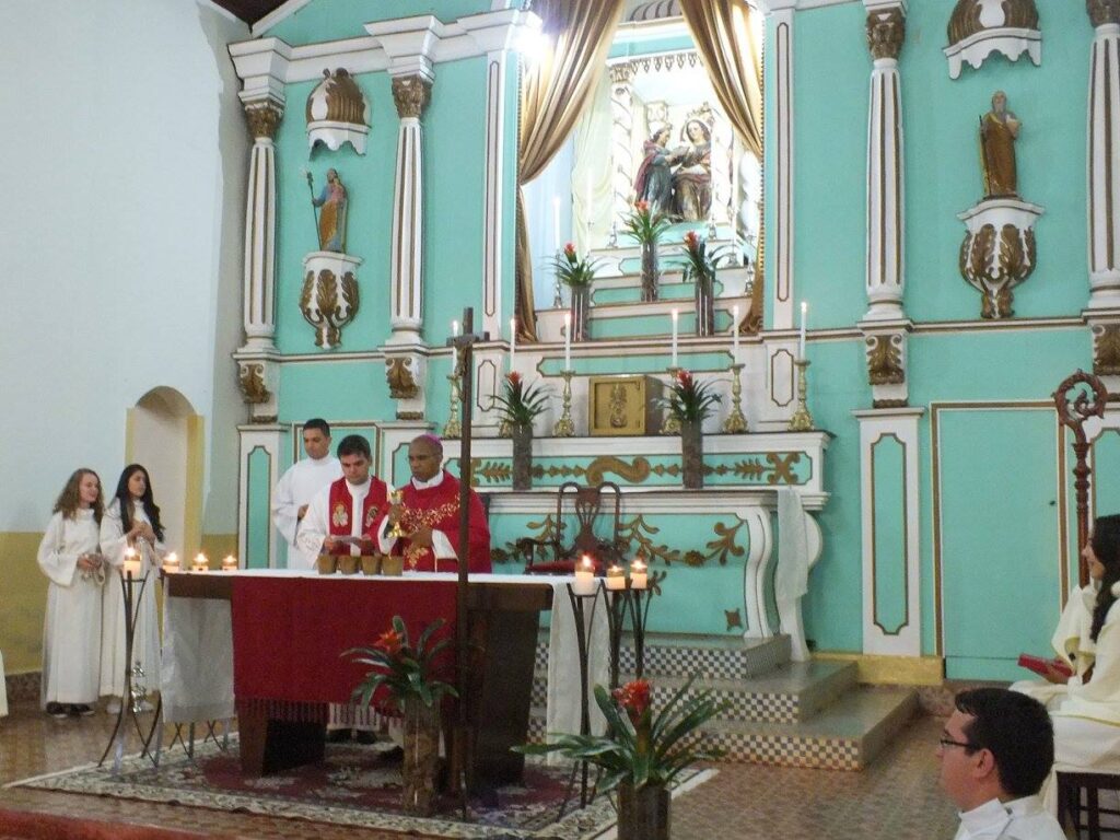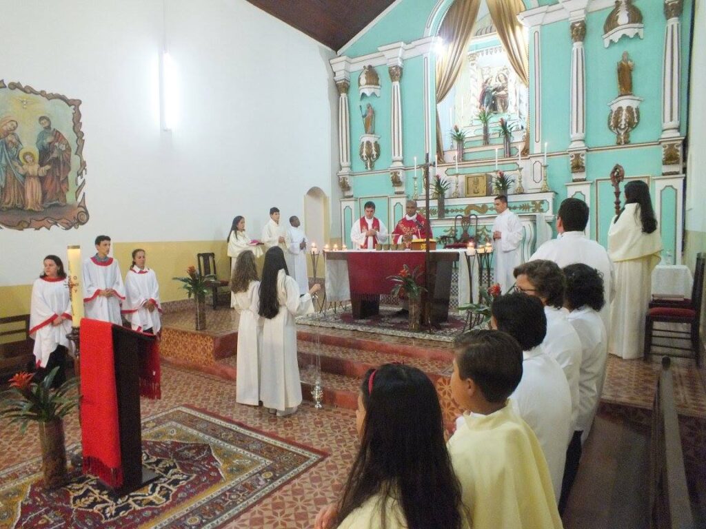 Neste 10 de janeiro, quarta-feira, Dom Pedro Cunha Cruz, visitando pela segunda vez nossa paróquia Santa Anna, em Santana do Capivari, celebrou a Eucaristia com administração do sacramento da Crisma a 19 catequisandos, sendo 5 deles participantes do catecumenato e os demais adolescentes.