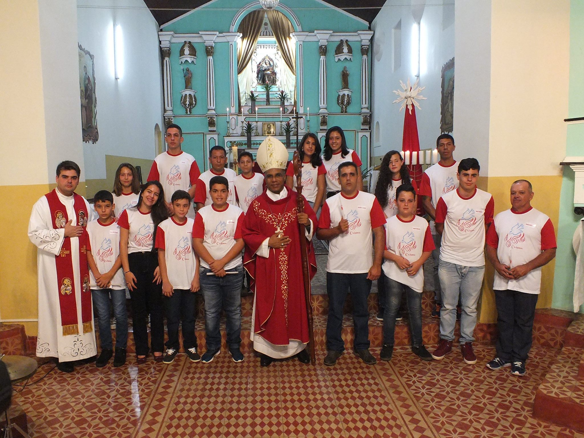 Neste 10 de janeiro, quarta-feira, Dom Pedro Cunha Cruz, visitando pela segunda vez nossa paróquia Santa Anna, em Santana do Capivari, celebrou a Eucaristia com administração do sacramento da Crisma a 19 catequisandos, sendo 5 deles participantes do catecumenato e os demais adolescentes.