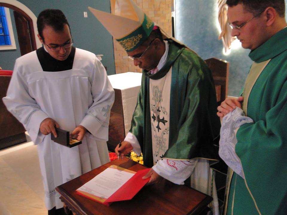 Seguindo a tradição, foi depositada, no altar, uma relíquia da beata Catarina Troiani, fundadora das Irmãs Franciscanas do Imaculado Coração de Maria, que trabalham em São Lourenço.
