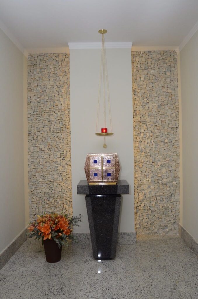 A igreja segue em tudo as orientações litúrgicas acerca dos espaços para a Celebração do Mistério da Fé, de modo a ser uma antecipação da Jerusalém celeste, um lugar que revela a glória de Deus.