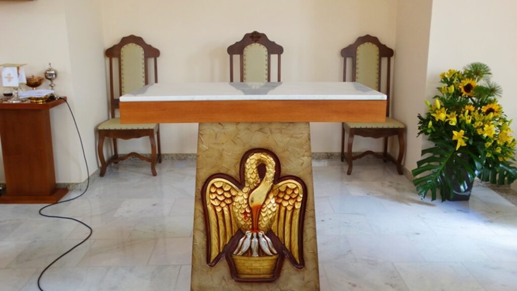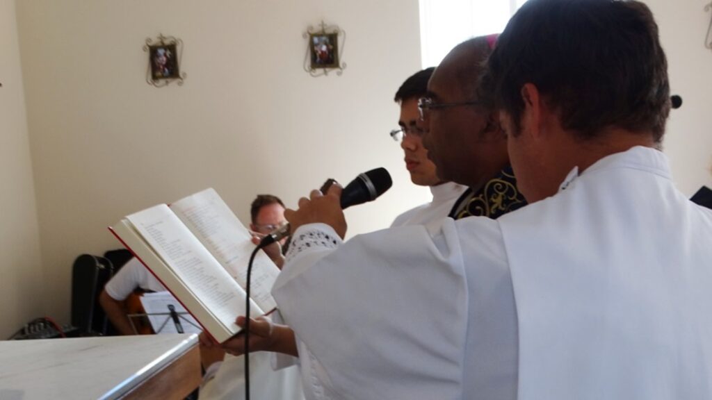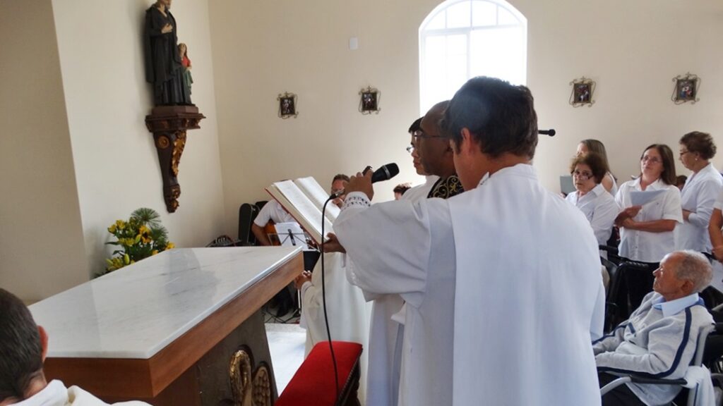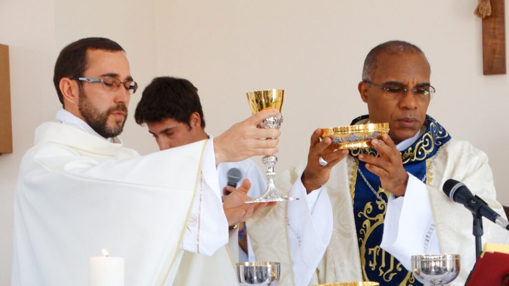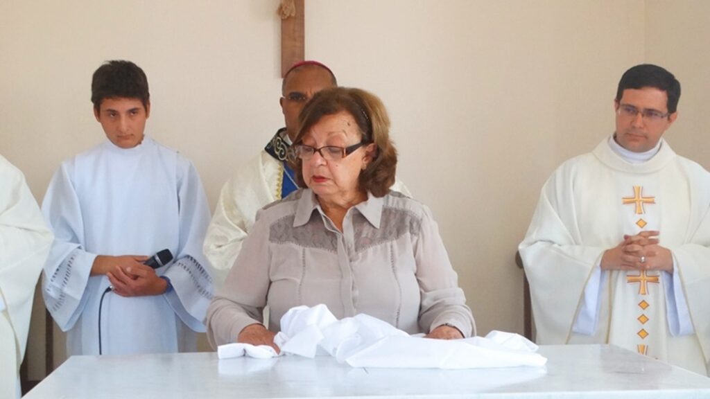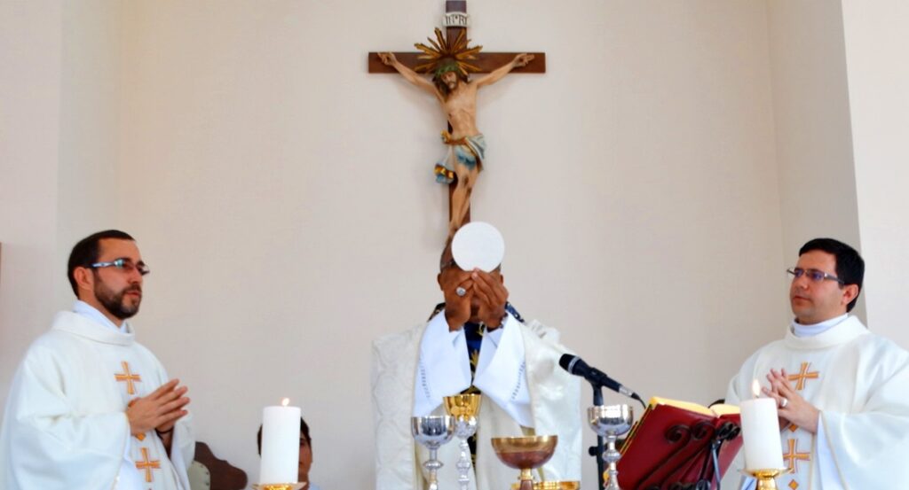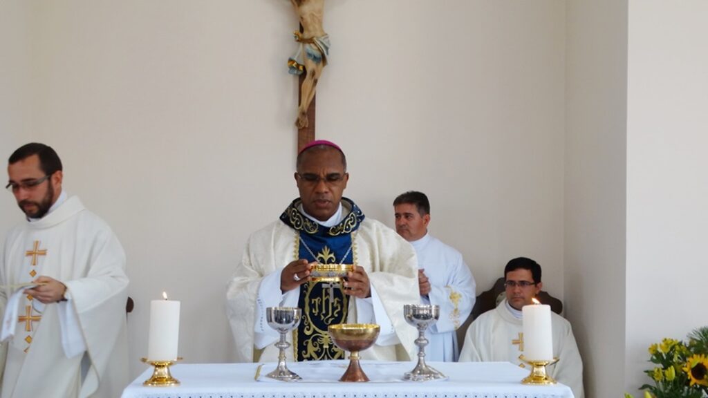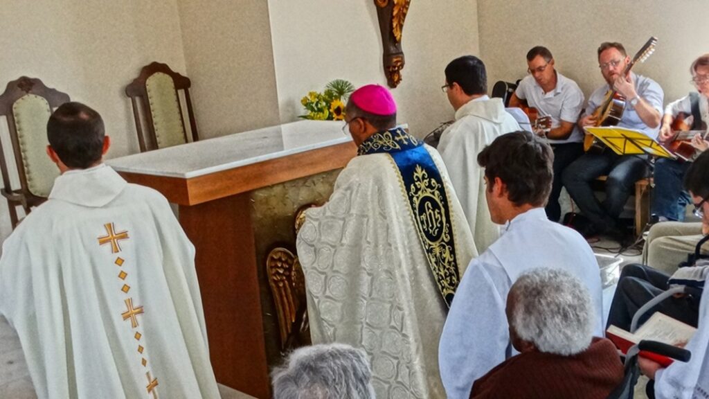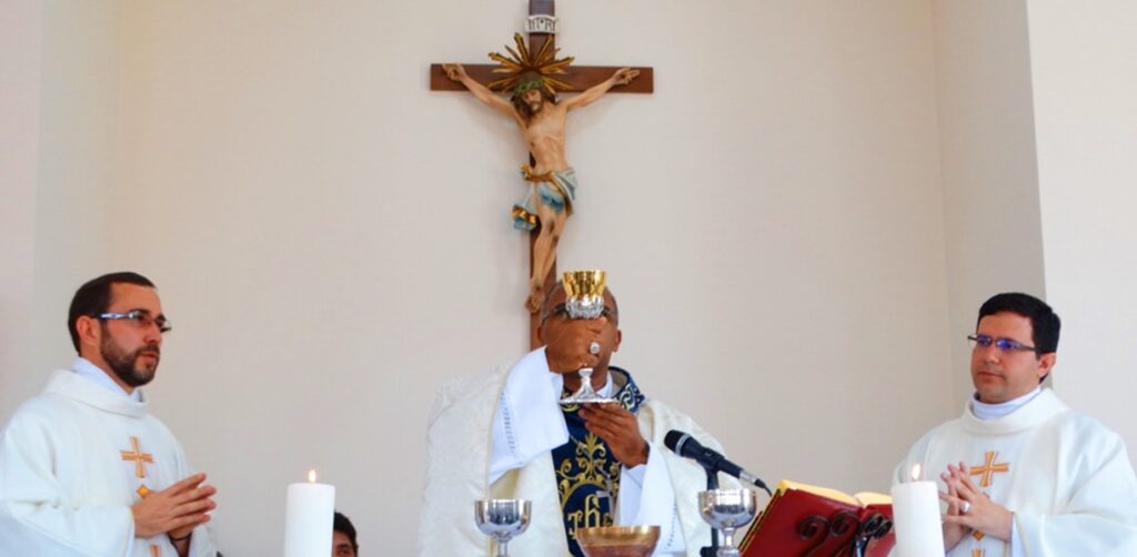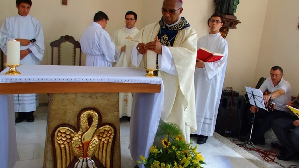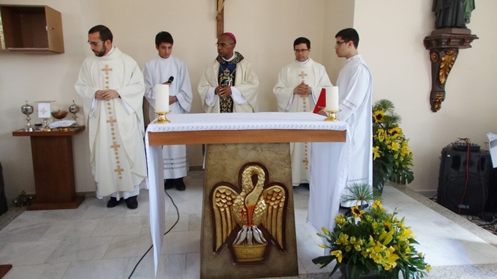E encerrando, D. Pedro concluiu explicando a importância que o altar tem para o templo: “Nós não fizemos reverência, nem beijamos o altar, na entrada, mas uma vez ungido, esse altar que vai receber as espécies do pão e do vinho que vão ser consagradas o corpo e sangue do senhor Jesus. Sempre que nós passarmos aqui, nós faremos uma reverência: um sinal de respeito pelo lugar mais sagrado desse templo que é o altar. Eu sempre digo: quando tem um sacrário na igreja, o lugar mais sagrado é o altar. O sacrário é o local que vai recolher as espécies eucarísticas do Cristo, a presença eucarística do pão, mas o que acontece aqui. Nós não consagramos as hóstias dentro do sacrário; o padre ou o bispo não abre a portinha do sacrário e consagra ali. Ele consagra sobre o altar. “