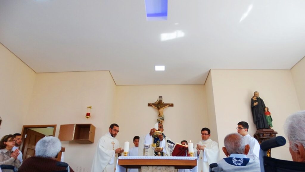A manhã deste sábado foi de grande festa para a Conferência Santo Antônio, mantenedora do Lar Vicentino de Campanha, bem como para seus assistidos e toda comunidade. Concluída a obra de seu oratório, este foi abençoado e seu altar foi consagrado pelo Rev. Bispo diocesano Dom Pedro Cunha Cruz. Concelebraram o pároco e chanceler do bispado, Pe. Luzair Coelho de Abreu e o Mg. Reitor do seminário propedêutico São Pio X e vigário paroquial, Pe. Edson Pereira de Oliveira.