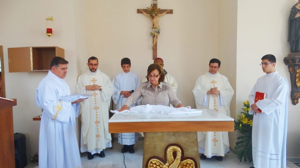 Como é determinado pela Igreja, foi feita a leitura pública da ata de Dedicação do Altar pelo pároco e chanceler da diocese, Pe. Luzair Coelho de Abreu, que explicou aos presentes que a ata foi feita em três vias: uma para arquivo na cúria diocesana, outra para arquivo paroquial, e a terceira via para arquivo no Lar Vicentino.