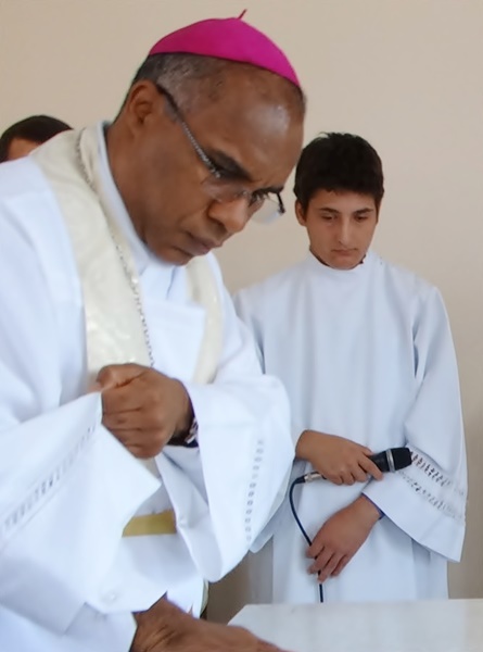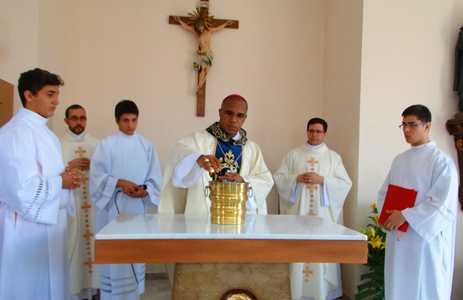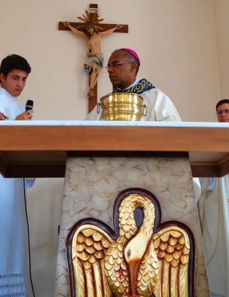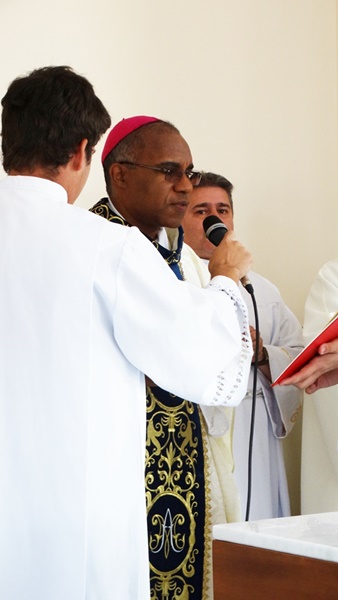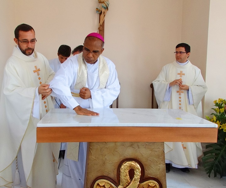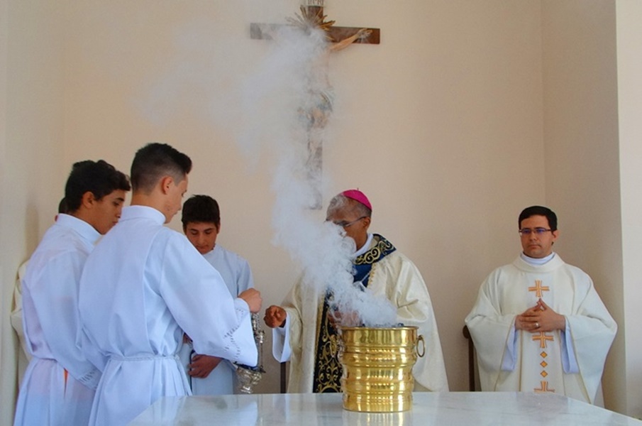 E encerrando, D. Pedro concluiu explicando a importância que o altar tem para o templo: “Nós não fizemos reverência, nem beijamos o altar, na entrada, mas uma vez ungido, esse altar que vai receber as espécies do pão e do vinho que vão ser consagradas o corpo e sangue do senhor Jesus. Sempre que nós passarmos aqui, nós faremos uma reverência: um sinal de respeito pelo lugar mais sagrado desse templo que é o altar. Eu sempre digo: quando tem um sacrário na igreja, o lugar mais sagrado é o altar. O sacrário é o local que vai recolher as espécies eucarísticas do Cristo, a presença eucarística do pão, mas o que acontece aqui. Nós não consagramos as hóstias dentro do sacrário; o padre ou o bispo não abre a portinha do sacrário e consagra ali. Ele consagra sobre o altar. “